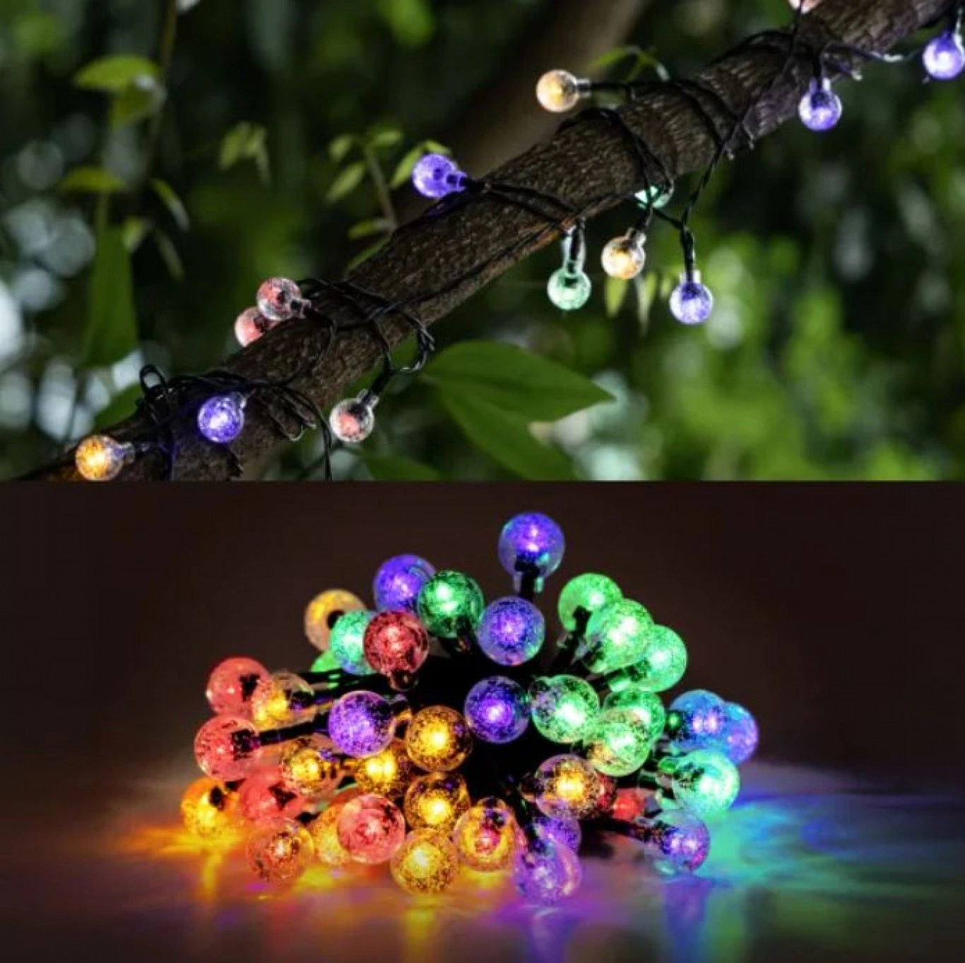 Ηλιακά Χριστουγεννιάτικα Bubble Λαμπάκια LED Εξωτερικού Χώρου με Φωτοβολταϊκό Πάνελ – 10m Πολύχρωμου Φωτισμού Aigostar