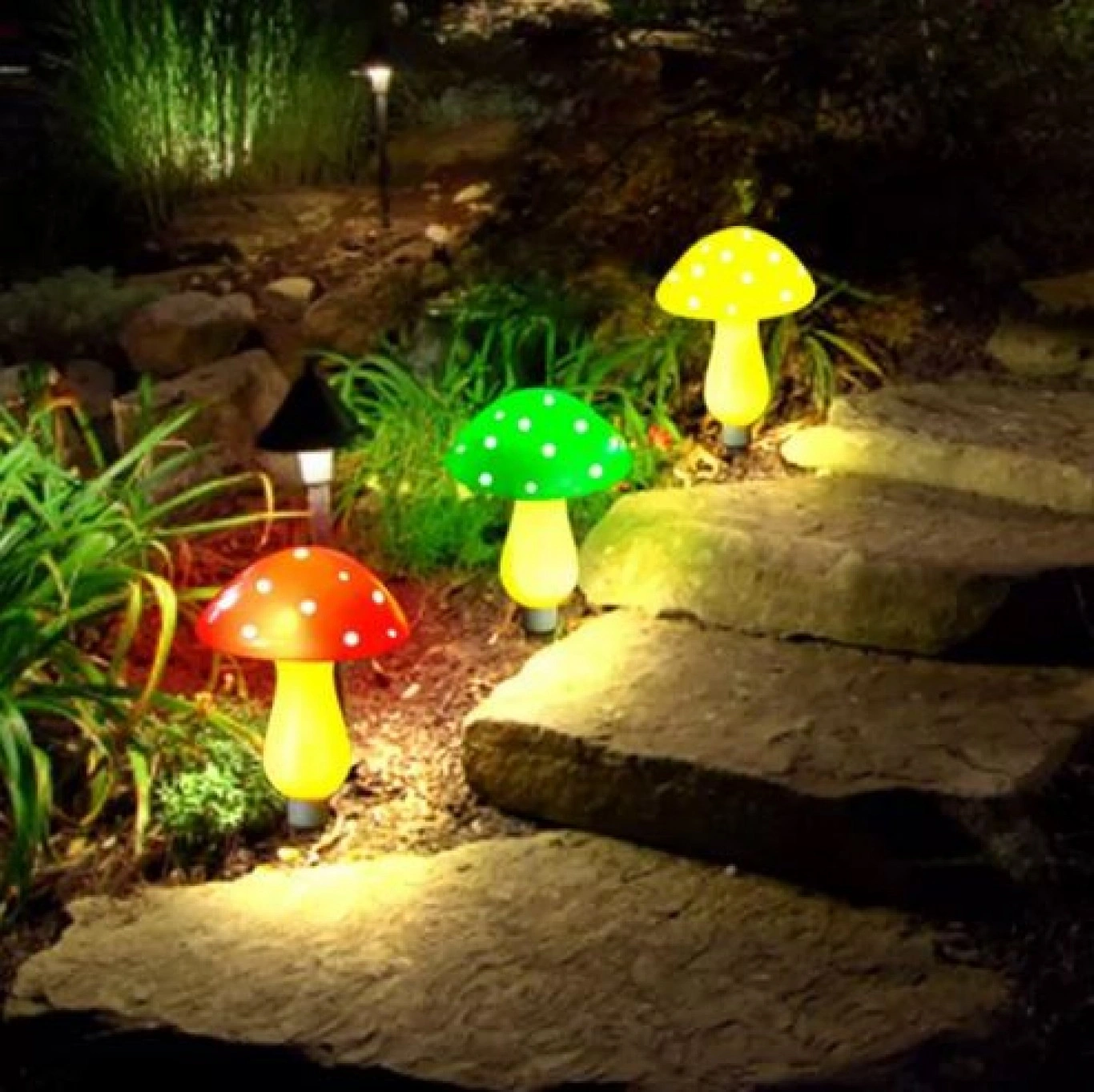 Ηλιακά Καρφωτά Φωτιστικά Led Μανιτάρια Εξωτερικού Χώρου Σετ 6 Τεμαχίων