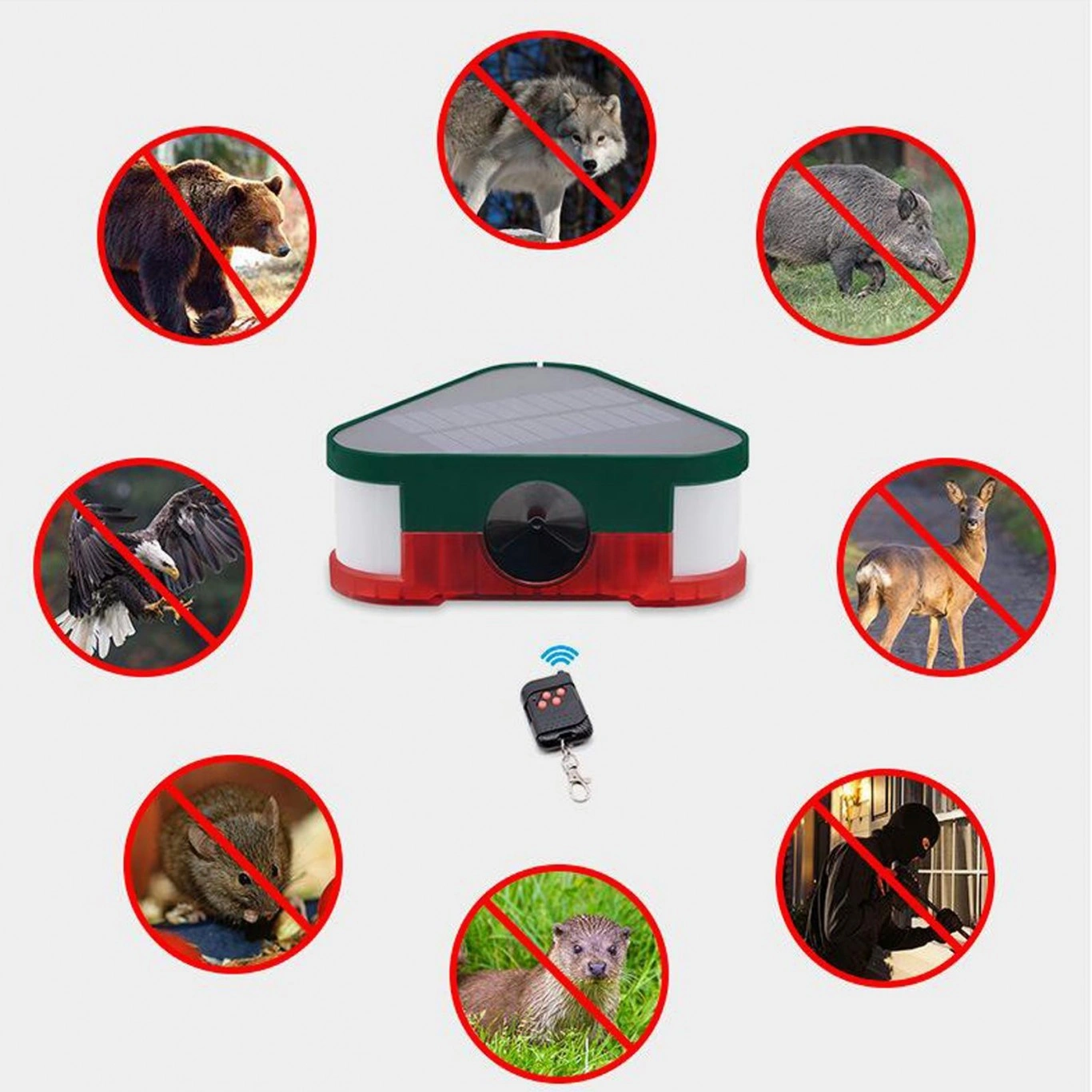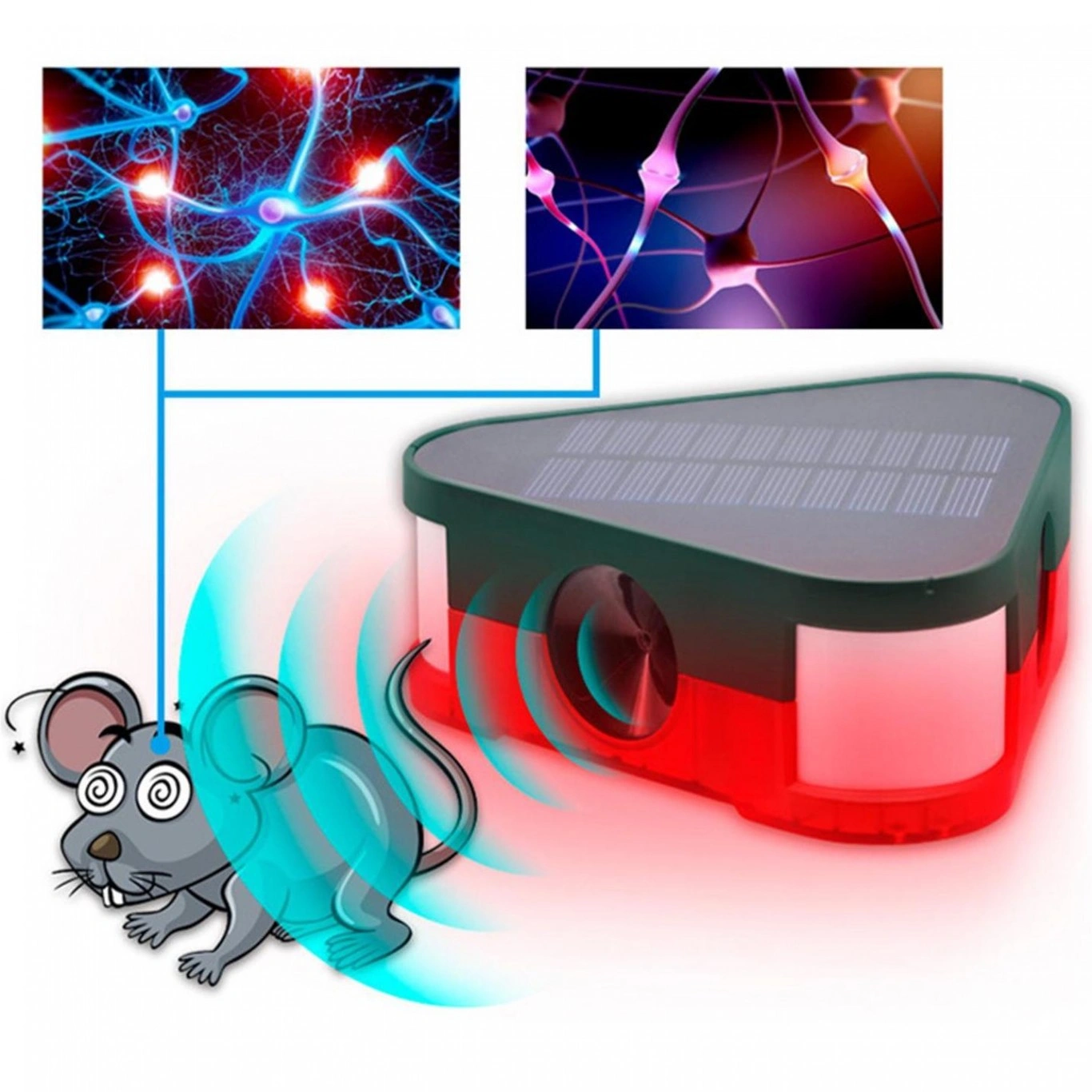 Ηλιακό ασύρματο απωθητικό υπερήχων για τρωκτικά όπως ποντίκια, αρουραίους κ.α. Εκπέμπει υπερηχητικές συχνότητες που τα τρωκτικά τις εκλαμβάνουν σαν κίνδυνο και απομακρύνονται.