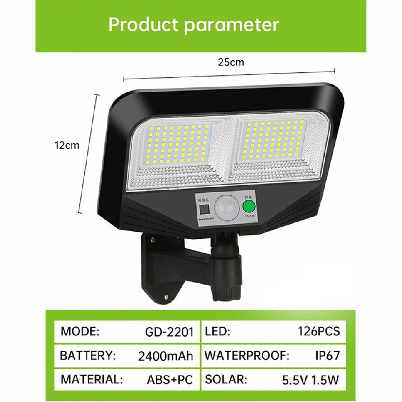 Ηλιακός Προβολέας LED Αδιάβροχος IP67 με Ενσωματωμένο Φωτοβολταϊκό Πάνελ, Τηλεχειριστήριο, Αισθητήρα κίνησης & Χρονοδιακόπτη GD-2201