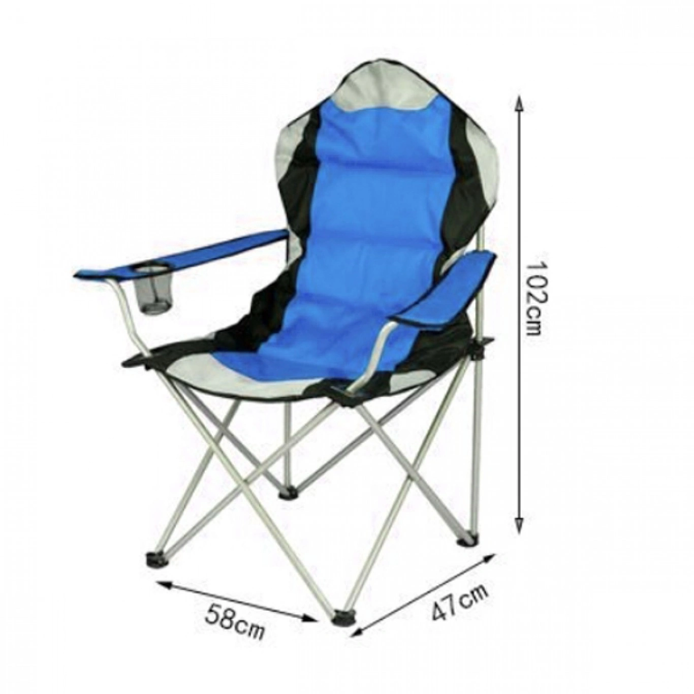 Καρέκλα Camping Πτυσσόμενη Μπλε/Μαύρο/Ασημί με Μεταλλικό Σκελετό – 58x47x102cm