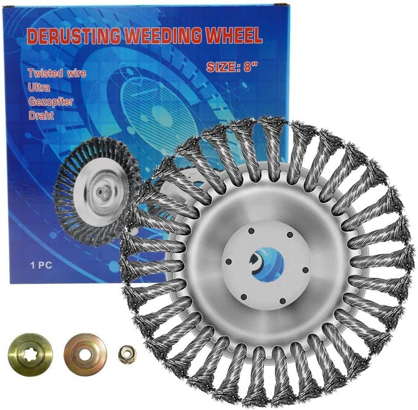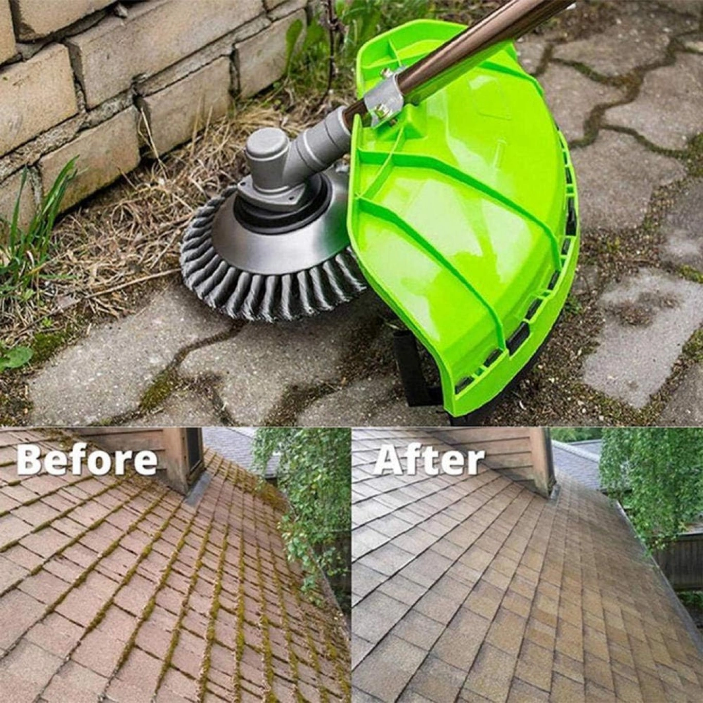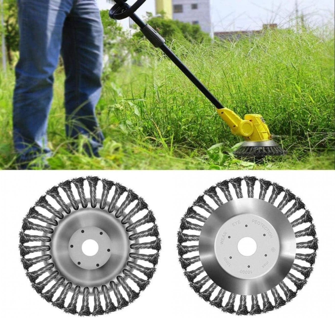 Βούρτσα ζιζανίων με σύρμα από χάλυβα. Αυτή η κεφαλή μπορεί να αφαιρέσει αποτελεσματικά όλα τα ζιζάνια και τα χόρτα από στους διαδρόμους με τουβλάκια, πλακόστρωτα και αρμούς πεζοδρομίων. Επίσης αυτή η ατσάλινη στρόγγυλη βούρτσα είναι κατάλληλη για την αφαίρεση σκουριάς, σκόνης και οξείδωσης. Κατάλληλη για όλα τα χορτοκοπτικά.