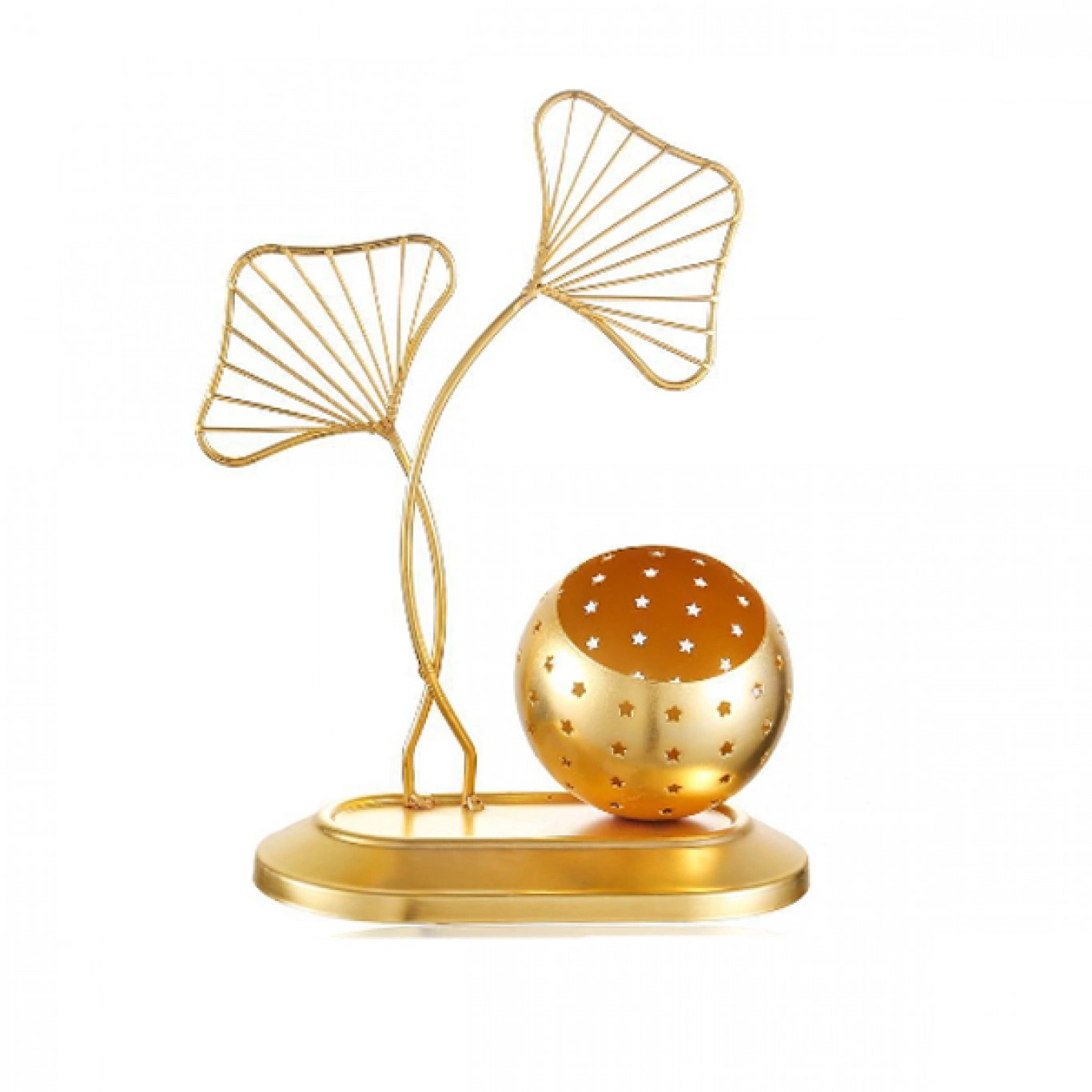 Κηροπήγιο για Ρεσώ από Μέταλλο και Γυαλί σε Σχήμα Λουλούδι και Σφαίρα με Αστεράκια για το Κερί 16×19,5εκ