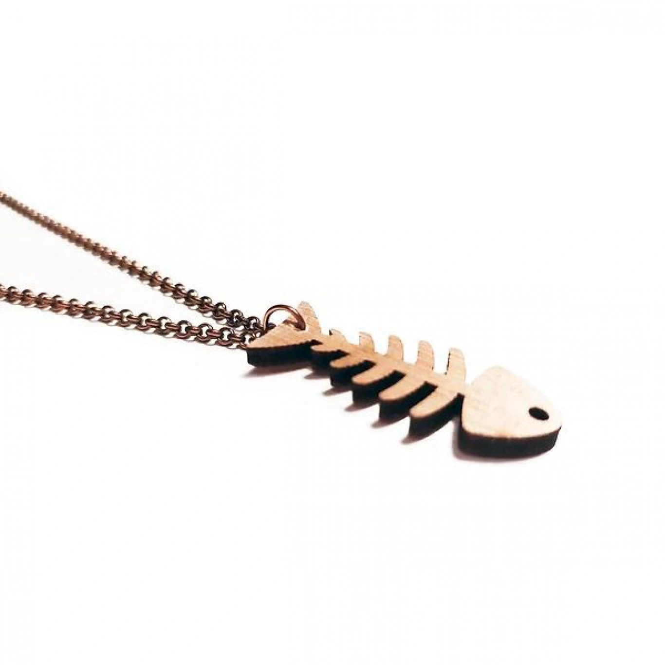 Κολιέ Ανδρικό από Ξύλο ”Fishbone” με Αυξομειούμενο Κορδόνι