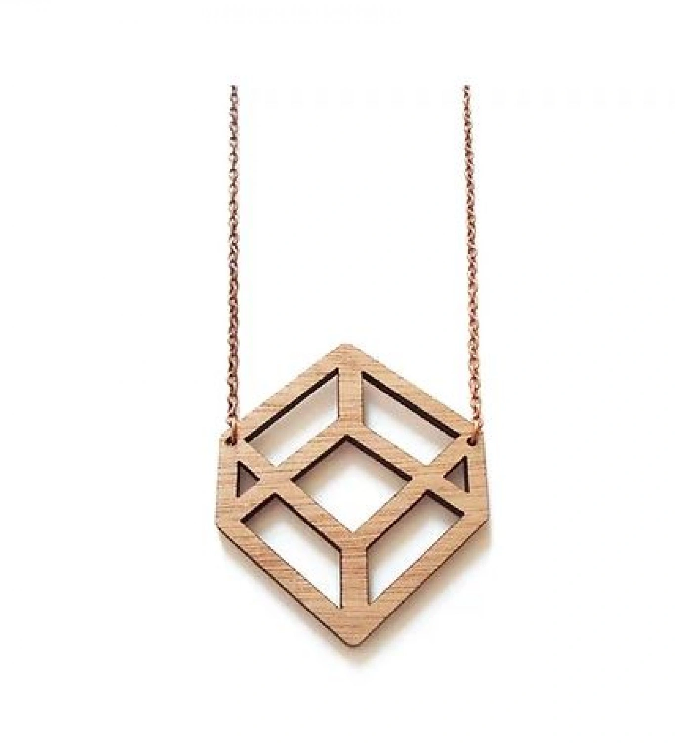 Κολιέ από Ξύλο 3D Cube με Μακριά Αλυσίδα 40cm