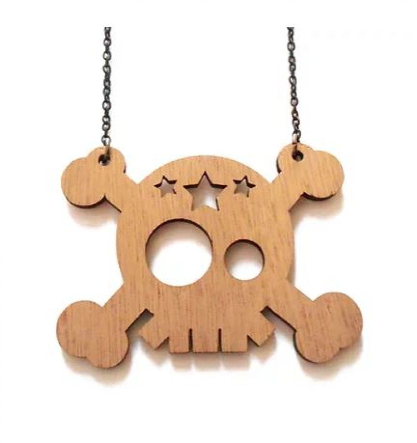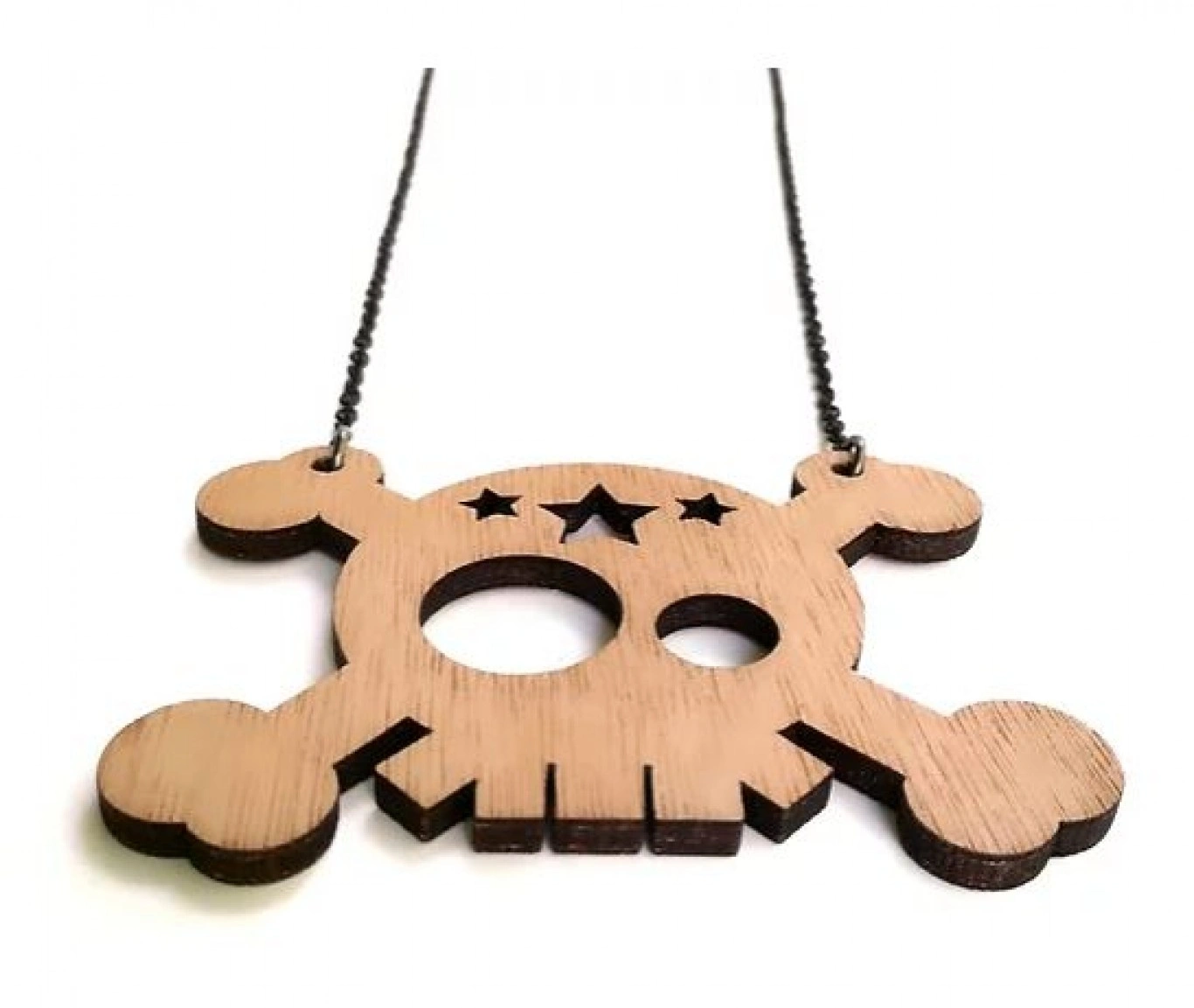 Κολιέ από Ξύλο Skull 3D Cube με Μακριά Αλυσίδα 40cm