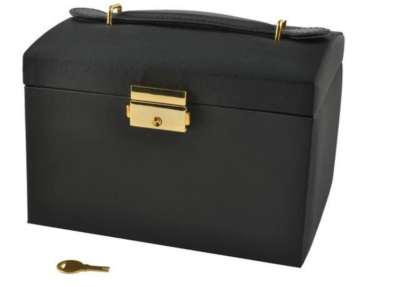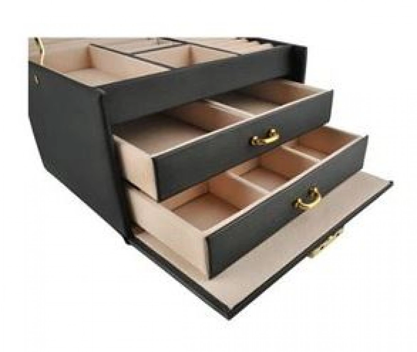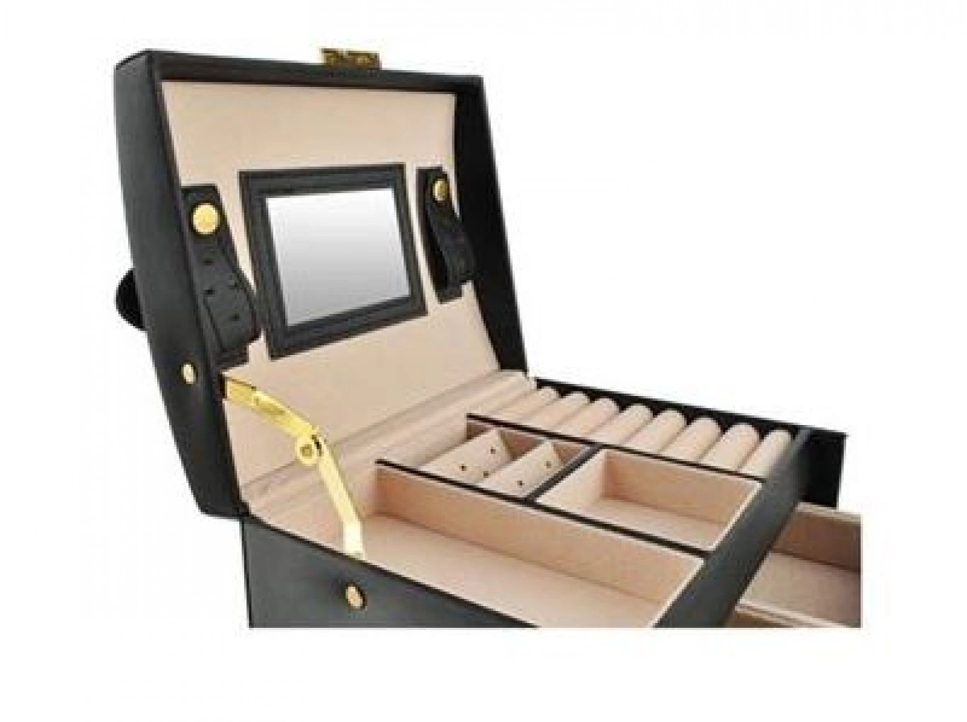 Κοσμηματοθήκη Μπιζουτιέρα Μαύρη με Καθρεφτάκι, Κλειδί και Συρτάρια 17.5×13.8×13.5cm Aria Trade