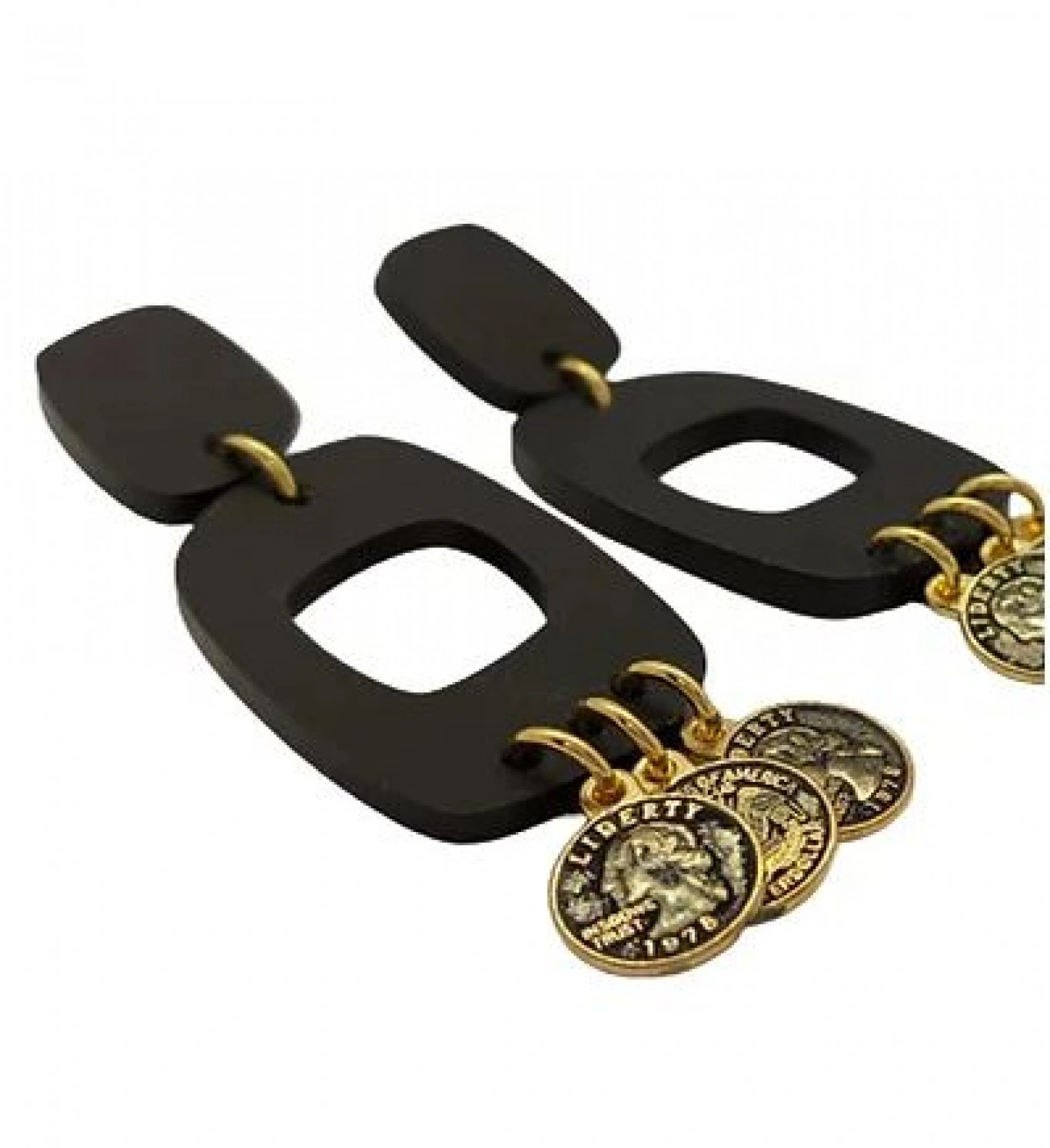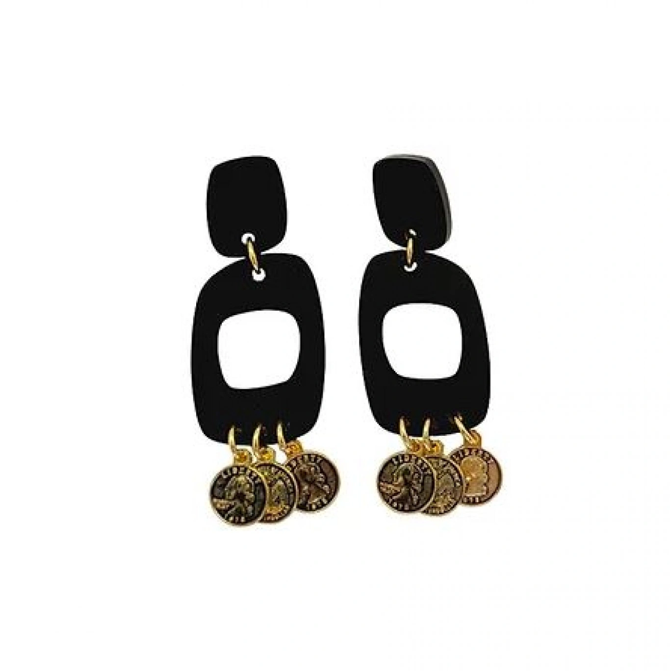 Κρεμαστά Σκουλαρίκια Aicha από Μαύρο Plexiglass, Φλουράκια και Επαργυρωμένα Μεταλλικά Στοιχεία