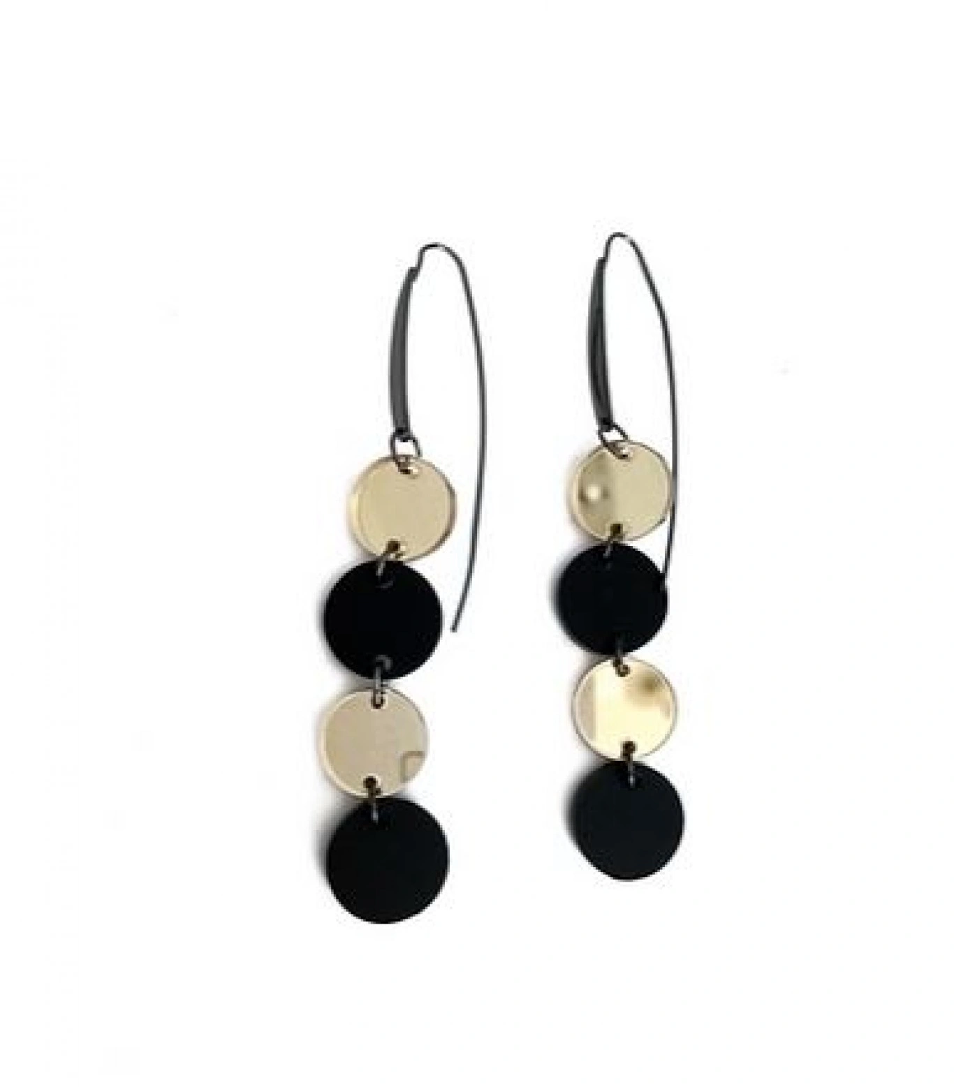 Κρεμαστά Σκουλαρίκια Bohemian από Μαύρο – Χρυσό από Plexiglass με Επαργυρωμένα Μεταλλικά Στοιχεία