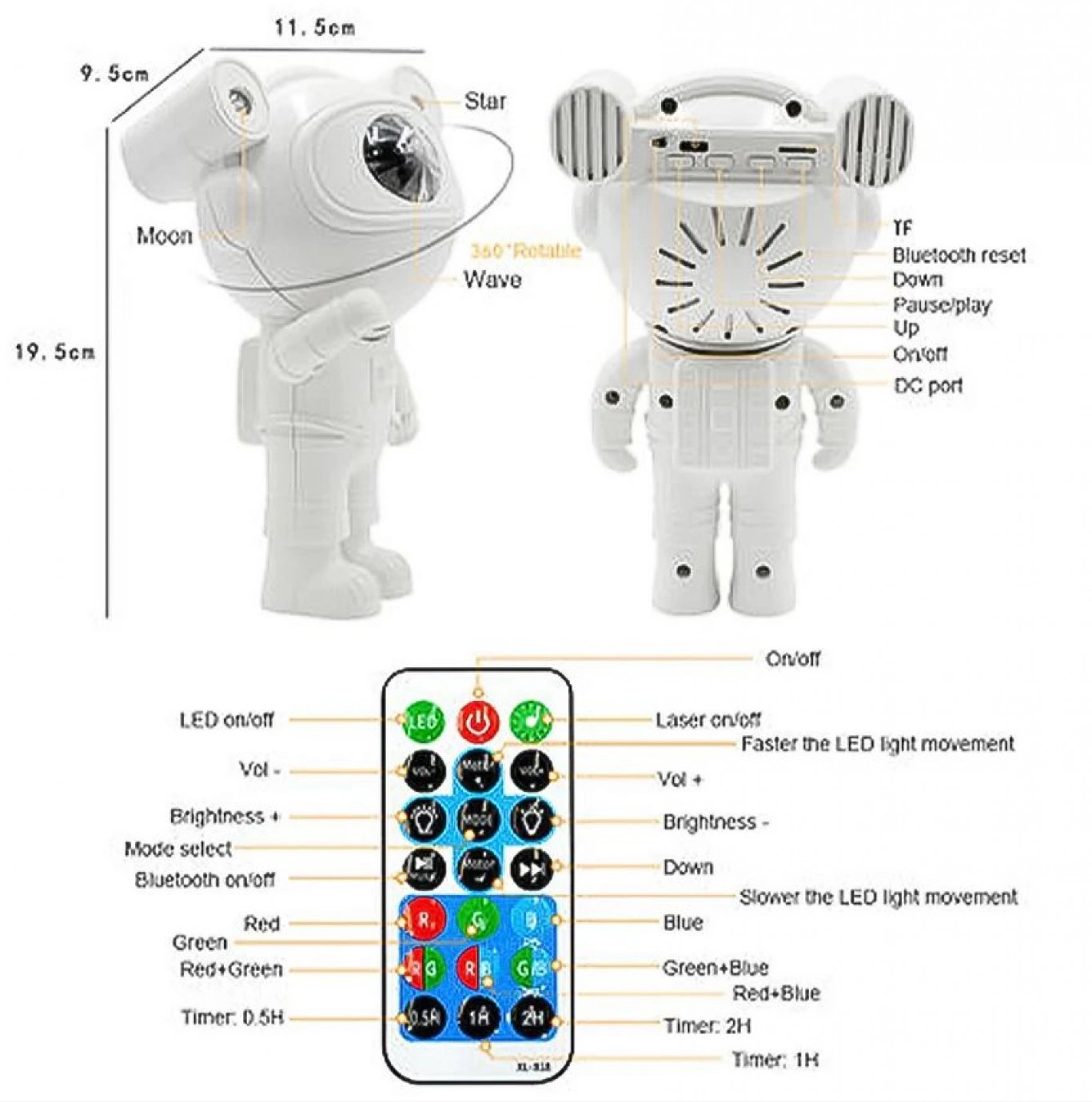 Led Φωτιστικό – Ηχείο Bluetooth Προτζέκτορας Nebula Αστροναύτη XL-731