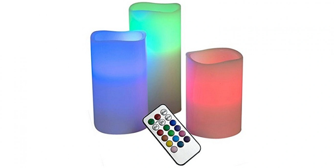 Ένα απίθανο σετ 3 κεριών που αντί για φυτίλι διαθέτουν led λάμπες. Έχουν 12 επιλογές χρωμάτων που μπορείτε να τις επιλέξετε από το τηλεχειριστήριο. Δημιουργήστε την τέλεια ατμόσφαιρα. Είναι εντελώς ακίνδυνα, χωρίς φλόγα, δεν στάζουν, δεν λερώνουν