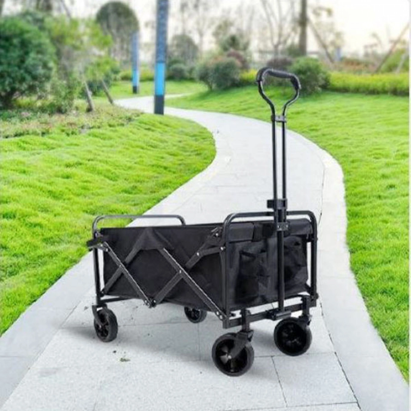 Μαύρο Φορητό Πολυλειτουργικό Αναδιπλούμενο Υφασμάτινο Καρότσι με Μεταλλικό Σκελετό 64x62x40 cm
