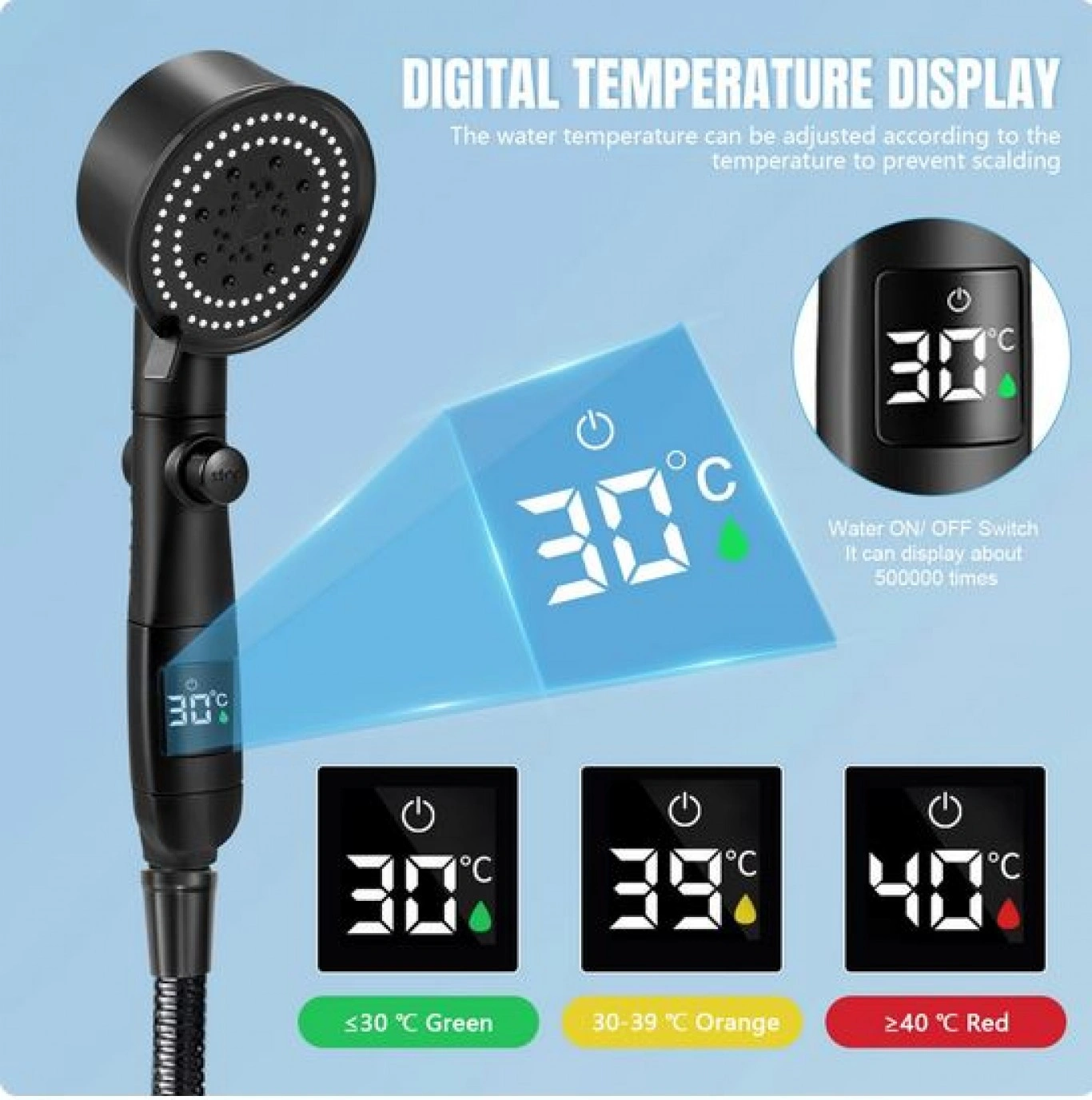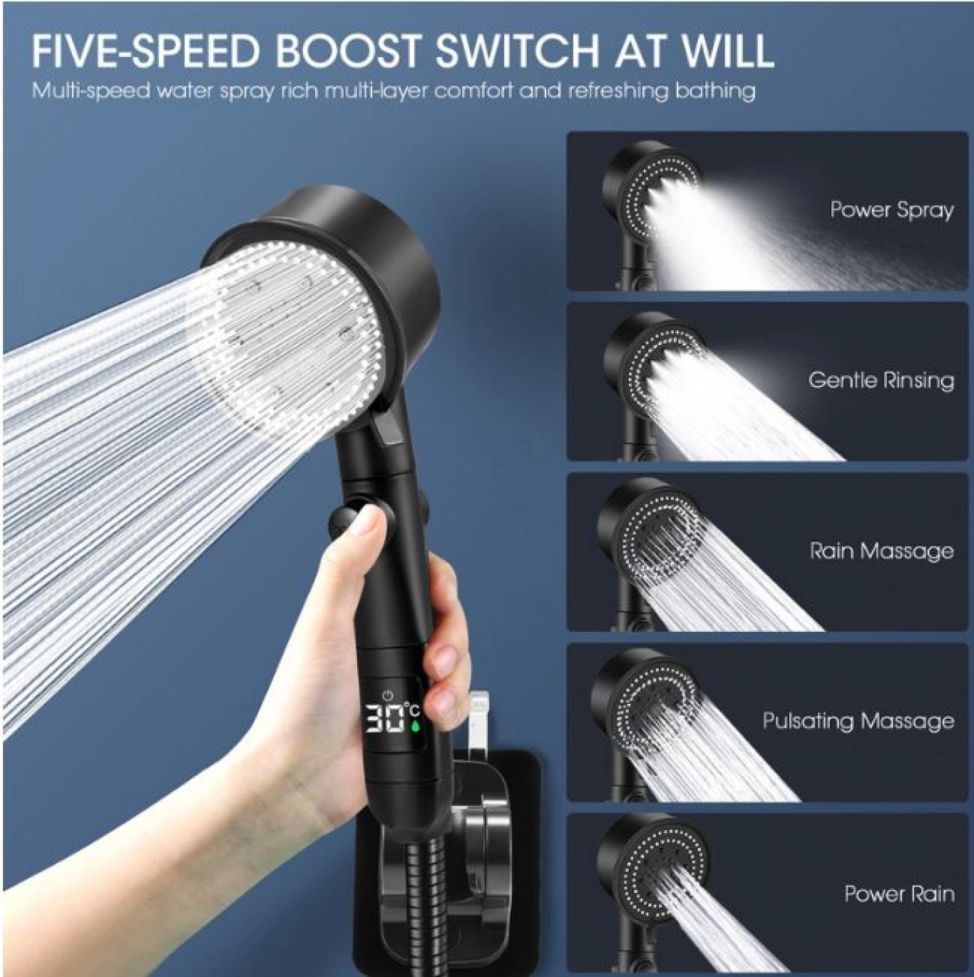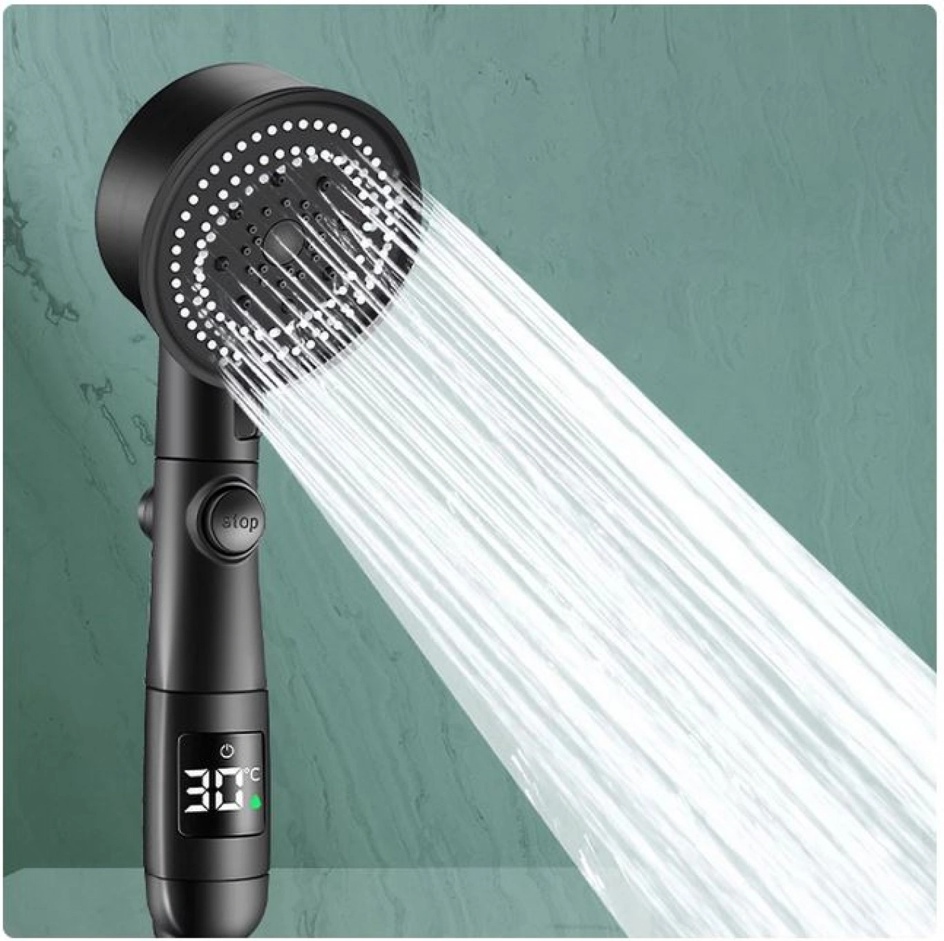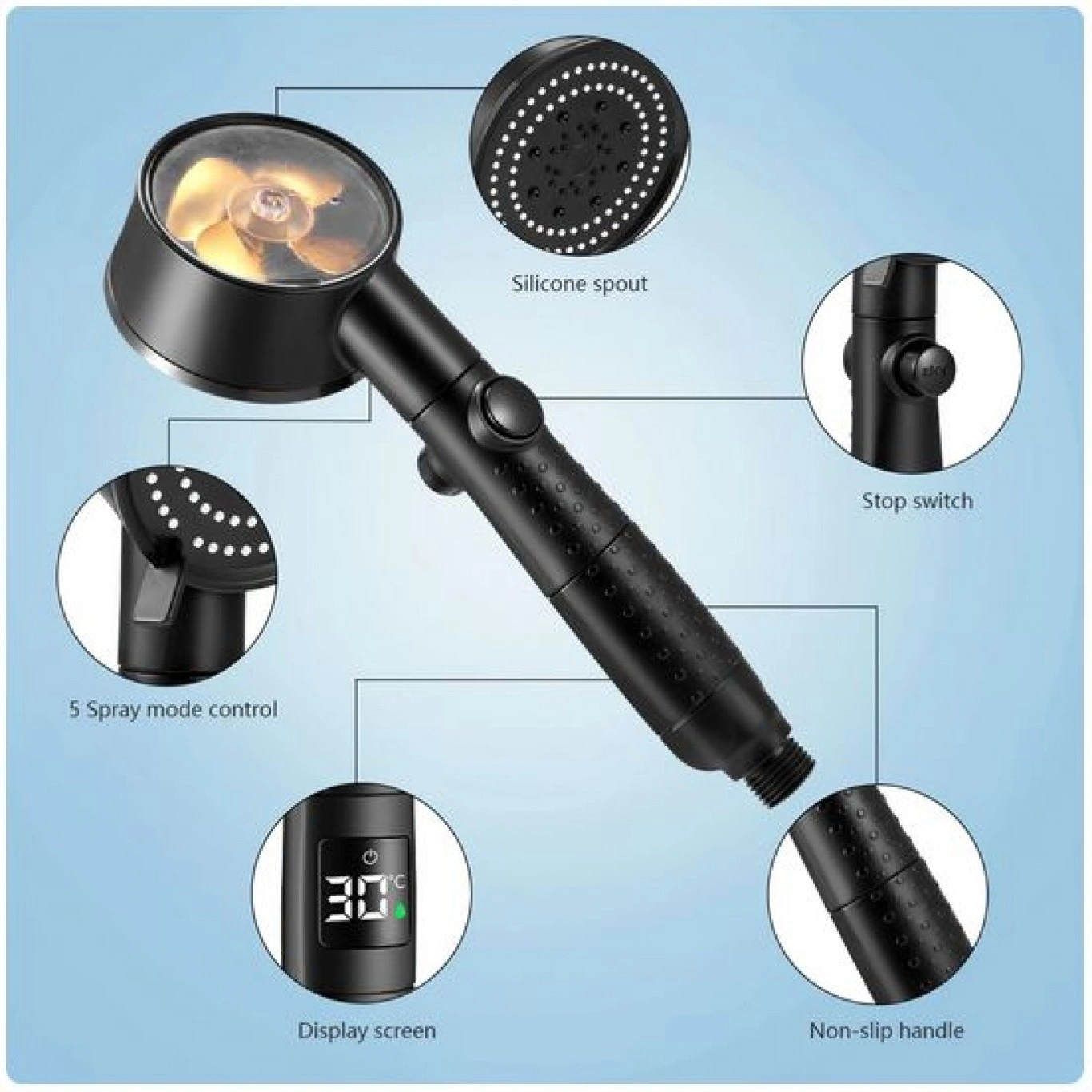 Μαύρο Τηλέφωνο Ντους Υψηλής Πίεσης με Τουρμπίνα και Ψηφιακή Ένδειξη Θερμοκρασίας του Νερού