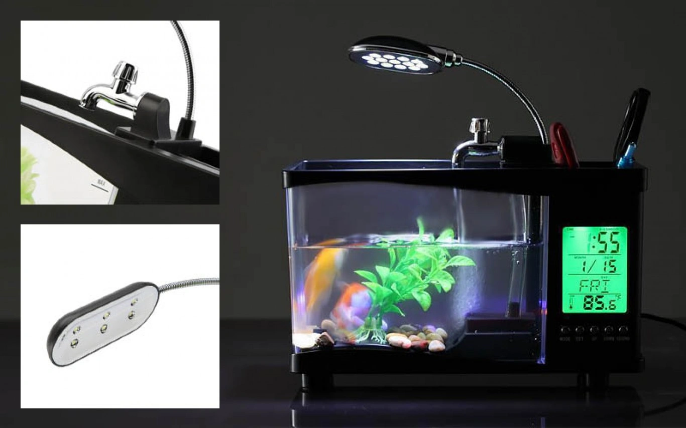 Mini Ενυδρείο – Μολυβοθήκη με Φωτισμό LED, Ηχείο & Οθόνη LCD με Ρολόι, Ημερολόγιο & Ξυπνητήρι USB