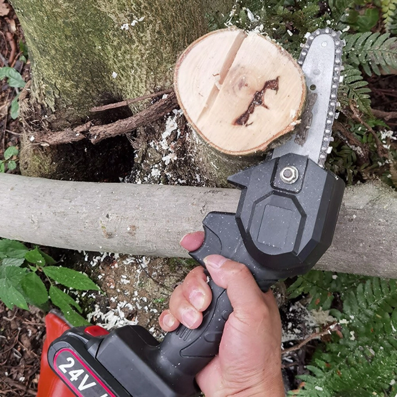 Mini Ηλεκτρικό Αλυσοπρίονο 24V Επαναφορτιζόμενο – Πριόνι με 2 Μπαταρίες και Λάμα 15εκ