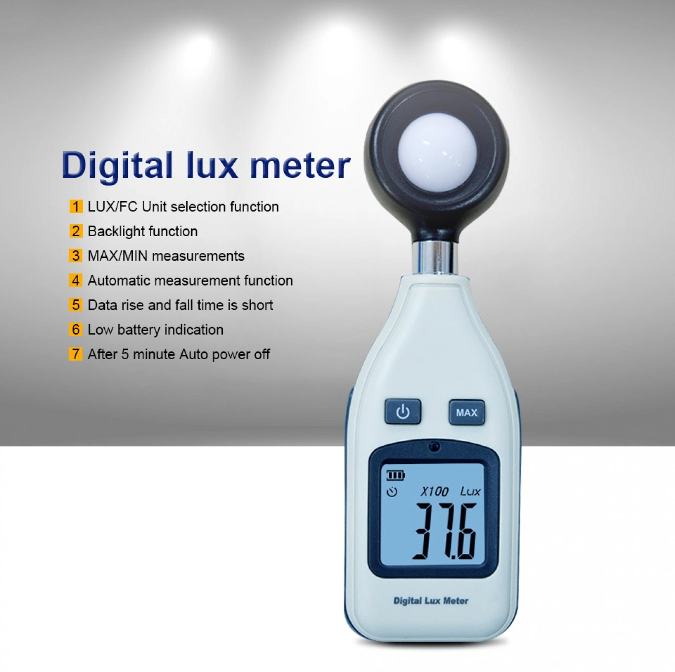 Μίνι ψηφιακός μετρητής φωτεινώτητας φωτόμετρο με backlight υψηλής ακριβείας και ποιότητας. Μετρήστε την ένταση φωτισμού φωτιστικών, φακών, προβολέων και ότι άλλο εκπέμπει φως. Κατάλληλο για την ρύθμιση του φωτισμού στα επιθυμητά επίπεδα με βάση τις προδιαγραφές που ισχύουν για κάθε χώρο.