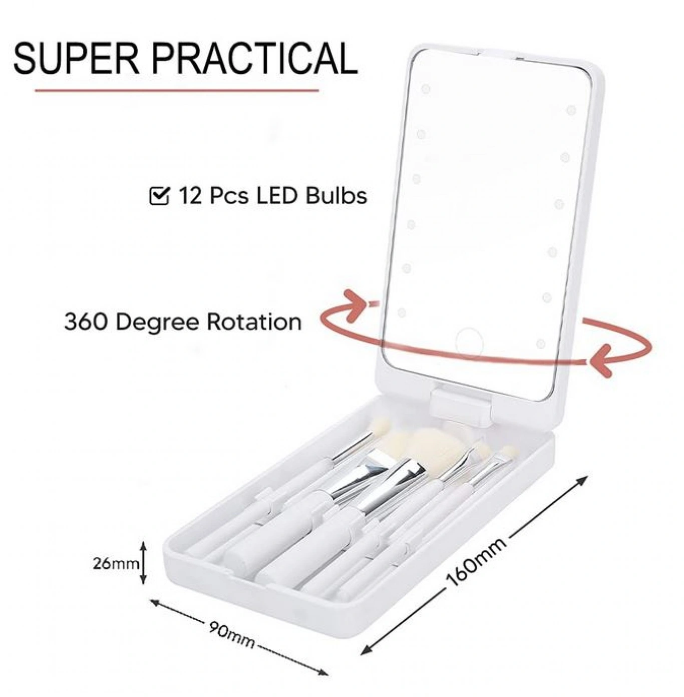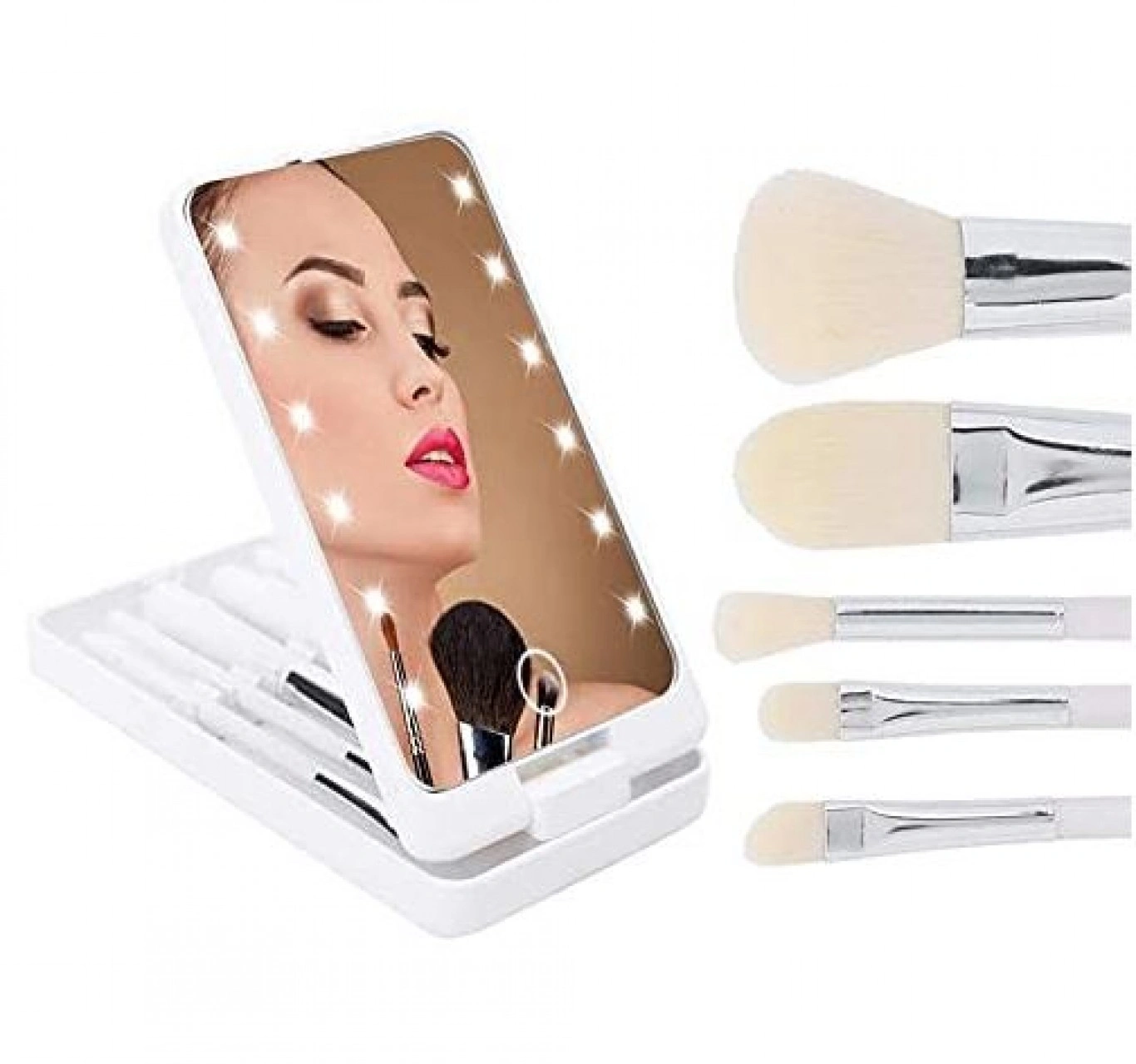 Μίνι Σετ με Φωτιζόμενο Led Καθρέπτη και 5 Πινέλα Μακιγιάζ