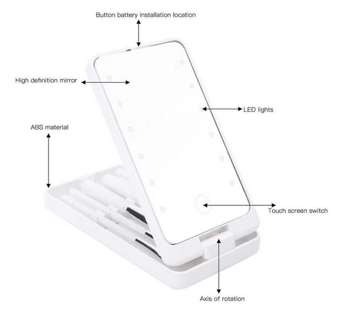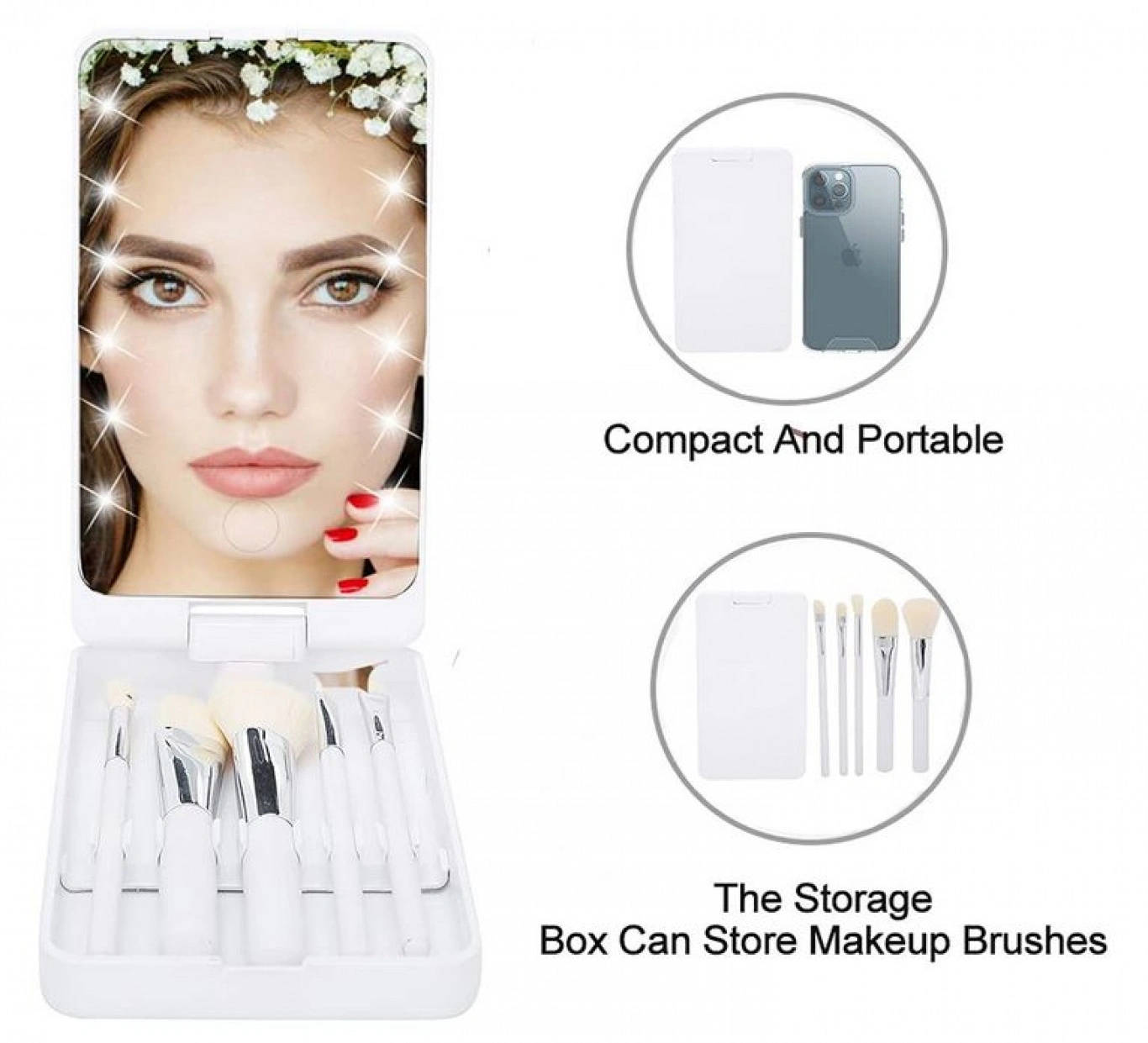 Με Θήκη αποθήκευσης για 5 πινέλα μακιγιάζ, σχεδιασμός με καθρέφτη και 12 φώτα LED με χειριστήριο αφής, κάνει το μακιγιάζ σας καλύτερο και μπορεί επίσης να ελέγξει ξεκάθαρα την κατάσταση του δέρματός σας.