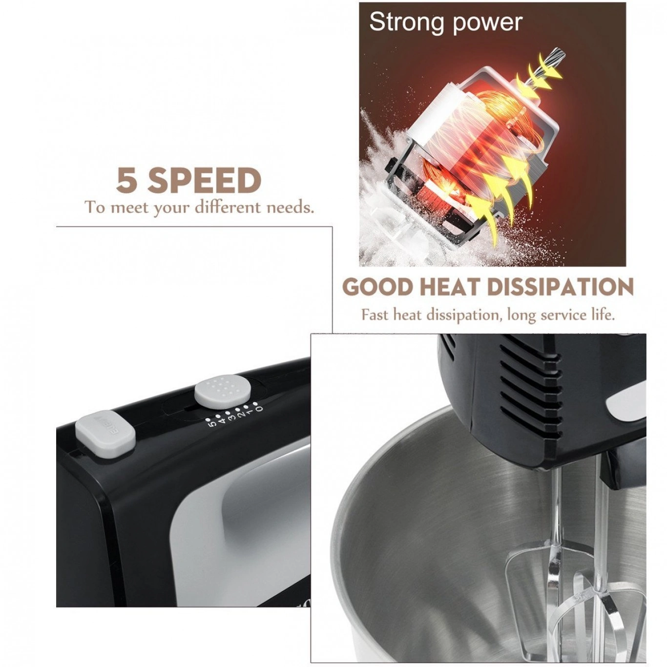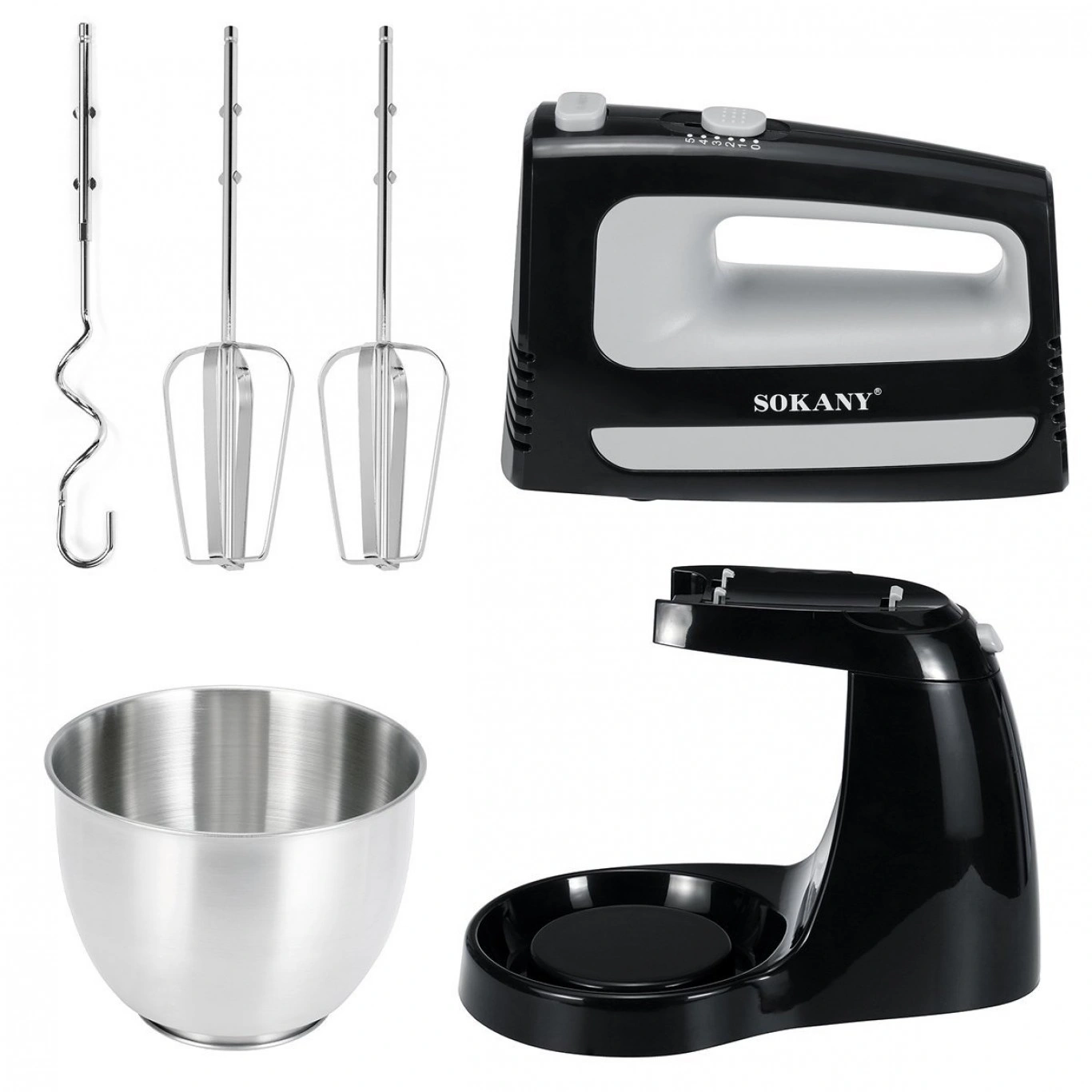 Η Sokany δημιούργησε ένα μίξερ χειρός με βάση και περιστρεφόμενο κάδο που το μετατρέπει σε ένα κανονικό μίξερ και μοτέρ με ένταση που φτάνει τα 400W. Οι πολύ μοντέρνες επιλογές χρωμάτων inox με μαύρο σας επιτρέπoυν ακόμα και να στολίσετε την κουζίνα σας με αυτό και όχι να το κρύψετε σε κάποιο ντουλάπι. Διαθέτει 5 σκάλες ταχύτητας.