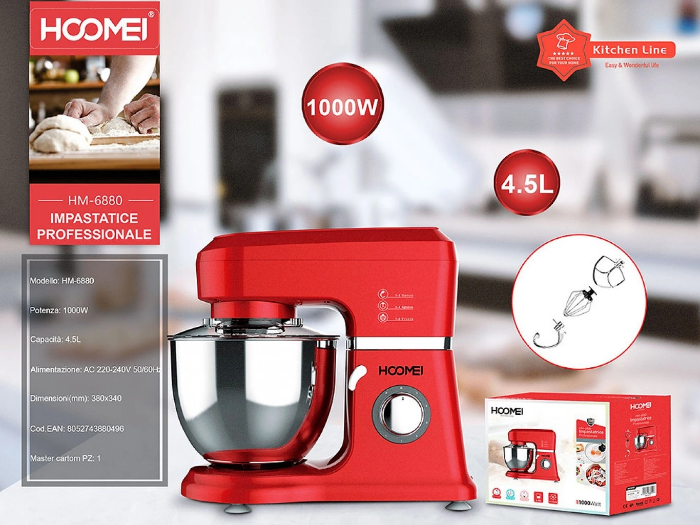 Η HOOMEI δημιούργησε ένα μίξερ χειρός με βάση και περιστρεφόμενο κάδο που το μετατρέπει σε ένα κανονικό μίξερ και μοτέρ με ένταση που φτάνει τα 1000W για να μπορείτε να φτιάξετε ακόμη και πιο σκληρά μίγματα. Εχει 3 διαφορετικά εξαρτήματα για πολλές και διαφορετικές χρήσεις. Διαθέτει 6 σκάλες ταχύτητας.