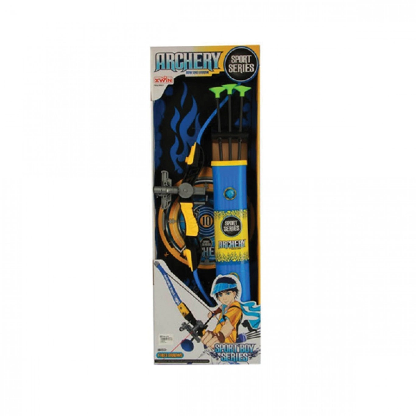 Το τόξο αποτελεί το απόλυτο παιχνίδι στόχου και συγκέντρωσης, χαρίζοντας στο παιδί ατελείωτες ώρες διασκέδασης. Τα παιχνίδια αυτού του τύπου, εφόσον τηρείται το μέτρο χρήσης τους, έχει αποδειχτεί ότι συμβάλλουν στην συναισθηματική καλλιέργεια του παιδιού καθώς αναπτύσσουν το αίσθημα της συνεργασίας αλλά και του θετικού ανταγωνισμού. Επιπλέον, ιδιαίτερα σημαντική είναι η επίδρασή τους στην ανάπτυξη των κινητικών δεξιοτήτων, καθώς το παιδί καλείται μέσα από το παιχνίδι να συντονίσει τις κινήσεις με την οπτική διάκριση και τη παρατηρητικότητα. Για να κάνετε τη βολή, βάλτε το βέλος στη σωστή θέση, τραβήξτε με το σχοινί και αφήστε! Το βεληνεκές του βέλους είναι πολύ μεγάλο και μπορεί να φτάσει μέχρι τα 15 m !