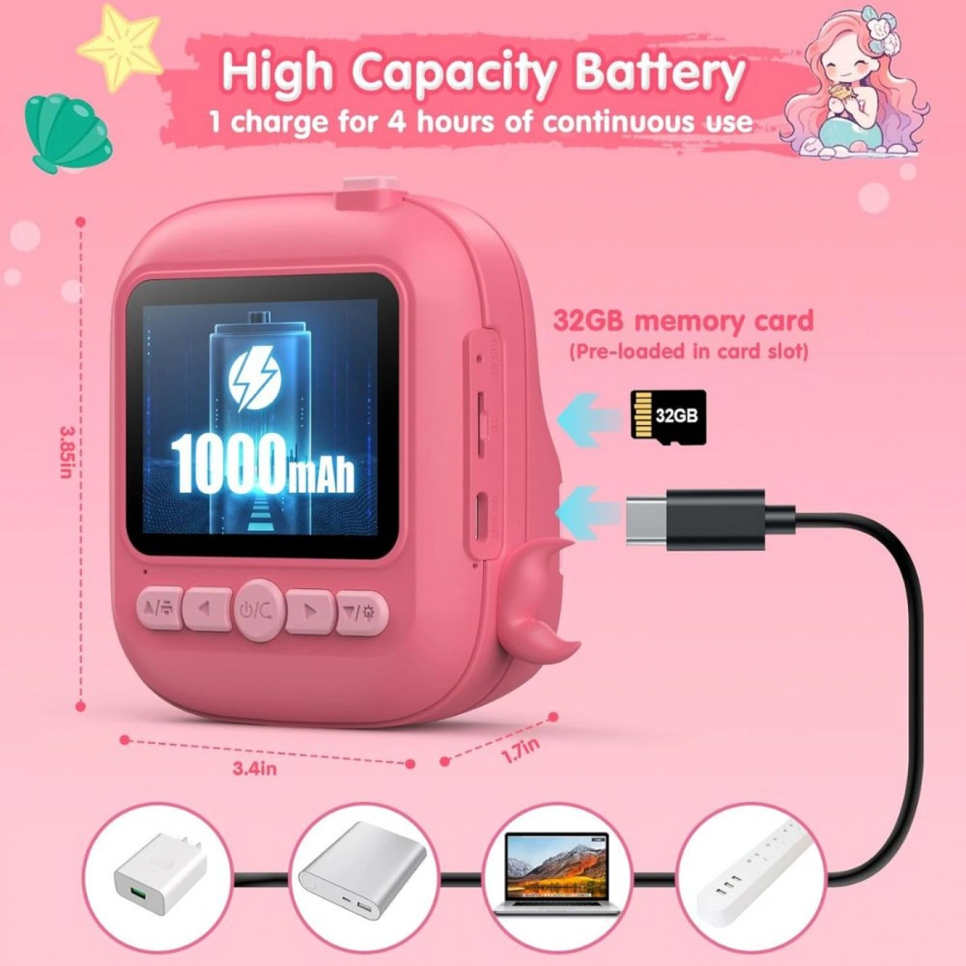 Παιδική Φωτογραφική Κάμερα με Παιχνίδια και Χαρτί Εκτύπωσης “Γοργόνα”