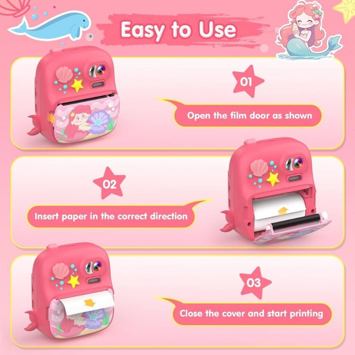 Η παιδική φωτογραφική κάμερα με χαρτί εκτύπωσης “γοργόνα” είναι η τέλεια συσκευή για τα παιδιά να εξερευνήσουν τη δημιουργικότητά τους και να αποθανατίσουν τις αγαπημένες τους στιγμές με ευκολία.