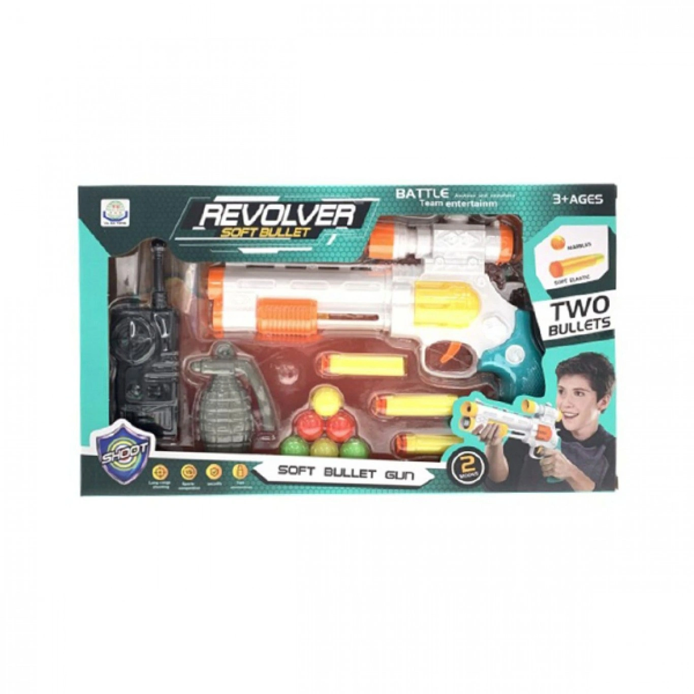 • Κατάλληλο για ηλικίες άνω των 6 ετών• Με βέλη τύπου Nerf απο αφρολέξ Στη συσκευασία θα βρείτε τα εξής :• 1 x Πιστόλι Εκτοξευτής τύπου Nerf• 3 x Βέλη τύπου Nerf• 6 x Σφαίρες• 1 x Ομοίωμα Walkie Talkie• 1 x Ομοίωμα χειροβομβίδας