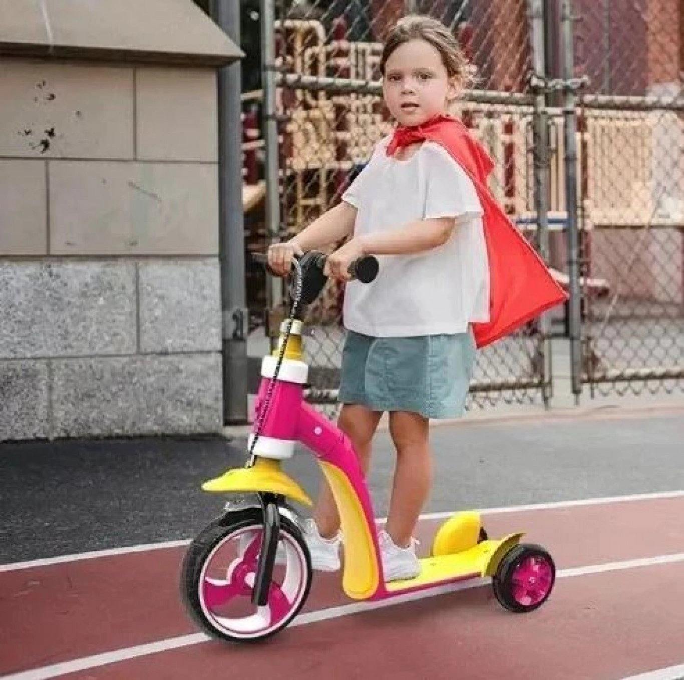 Ανακαλύψτε το ιδανικό παιχνίδι που συνδυάζει διασκέδαση, ασφάλεια και ανάπτυξη δεξιοτήτων! Αυτό το φωτεινό και πολύχρωμο όχημα μεταμορφώνεται εύκολα από ένα τρίτροχο ποδήλατο εκμάθησης σε ένα παιδικό σκούτερ – χωρίς κανένα εργαλείο.