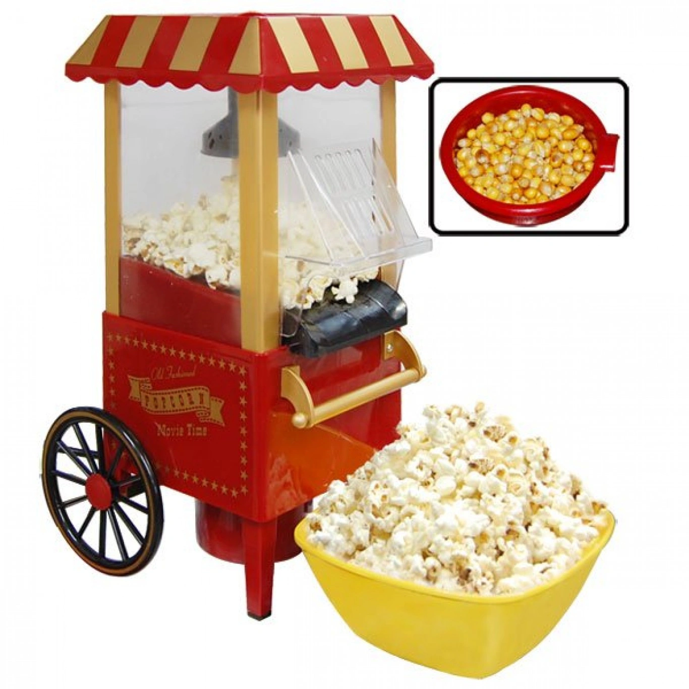 Φορητή Μηχανή Παρασκευής Ποπ Κορν – Old Fashioned Pop Corn Machine. Υγιεινή μηχανή παρασκευής ποπ κορν χωρίς χρήση λαδιού. Μικρή, φορητή και εύκολη στο καθάρισμα. Πανέμορφος σχεδιασμός που θυμίζει τις παραδοσιακές μηχανές που συναντάμε στα λούνα παρκ. Τα παιδιά θα τη λατρέψουν!