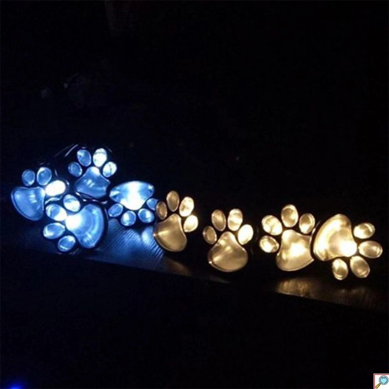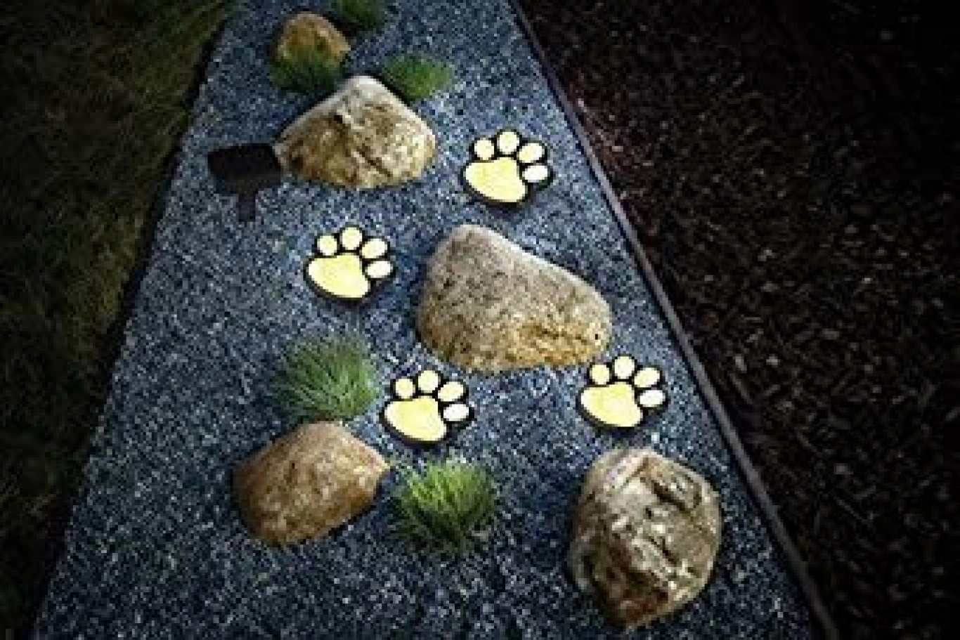 Ένα υπέροχο σετ ηλιακών φωτιστικών δαπέδου σε σχήμα πατούσας της Lightex , με αισθητήρα που τους επιτρέπει να ενεργοποιούνται αυτόματα κατά τη δύση του ηλίου.