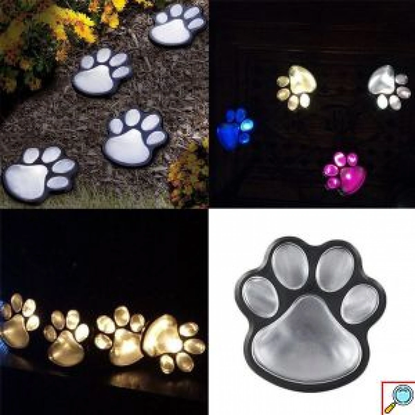 Paw Σετ Ηλιακών Φωτιστικών Δαπέδου με Σχήμα Πατούσας Ψυχρού Φωτισμού 7500K 0.06W με Αισθητήρα Φωτός 4τμχ