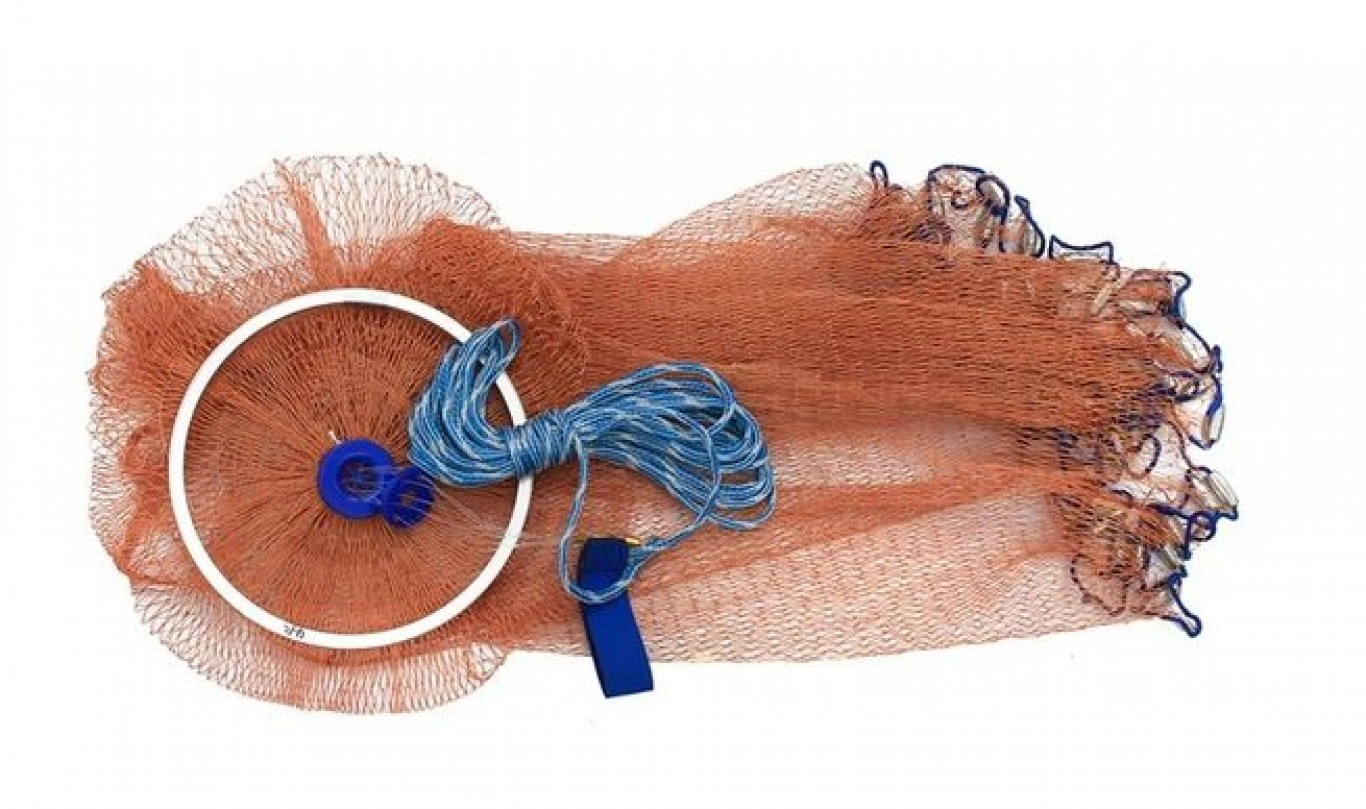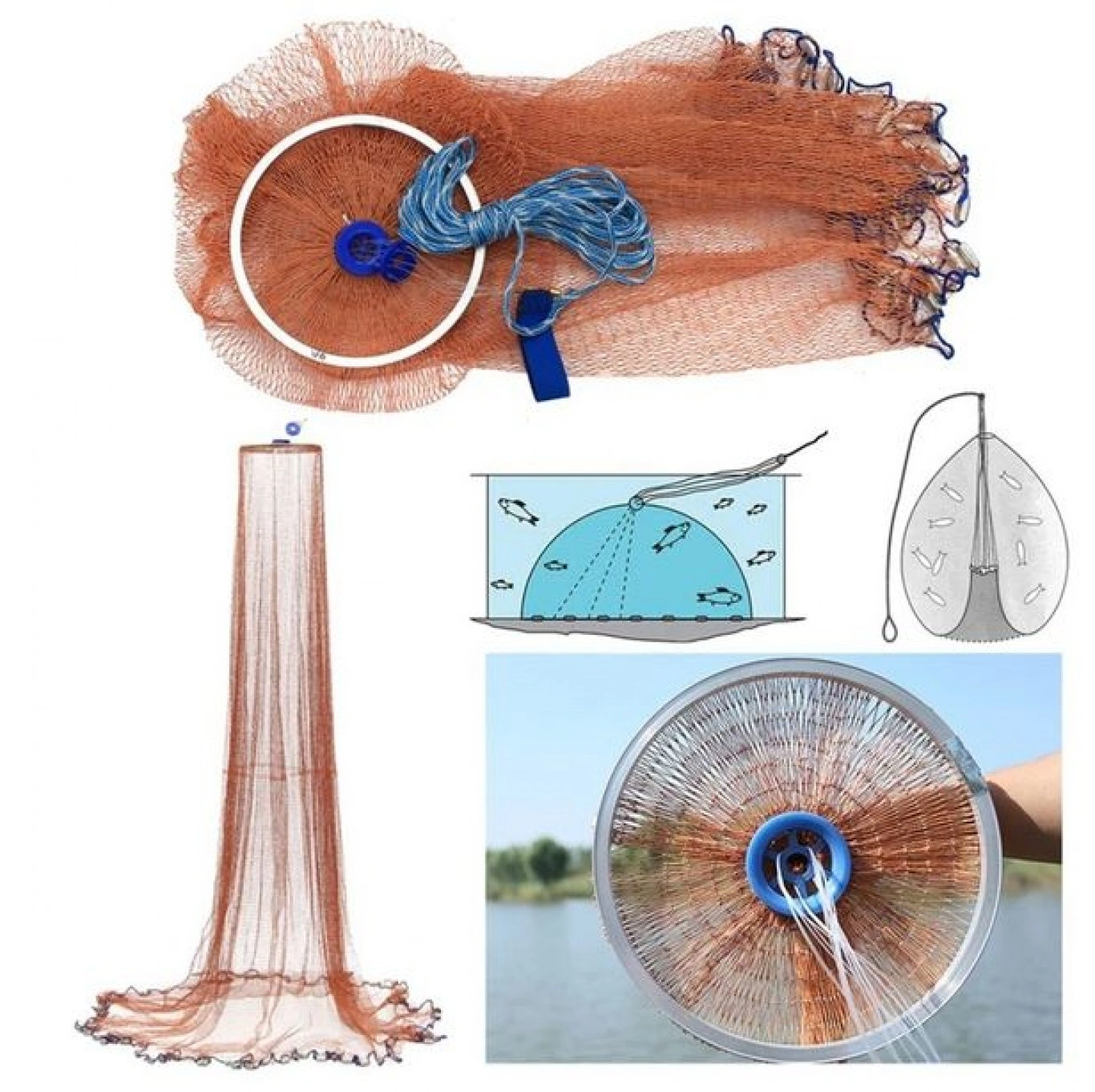 Πεζόβολο Αρματωμένο με Στεφάνι με Καφέ Δίχτυ Ψαρέματος Διαμέτρου 240cm
