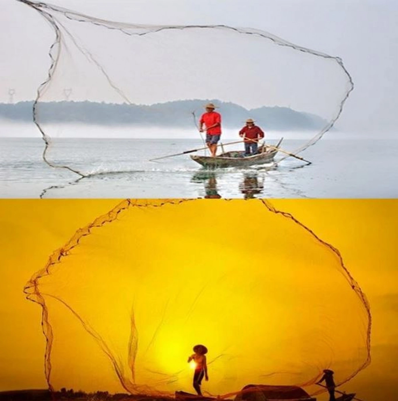 Από εκεί γίνετε το σήκωμα του διχτυού. Με αυτό τον τρόπο κυκλώνει, σχηματίζει ένα σταφύλι το δίχτυ και κυκλώνει τα ψάρια.