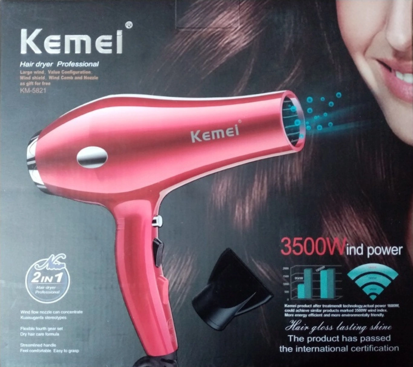 Πιστολάκι-Σεσουάρ Μαλλιών 3500W με Επιλογή Ταχύτητας και Επιλογή Κρύου-Ζεστού Αέρα KEMEI KM-5821