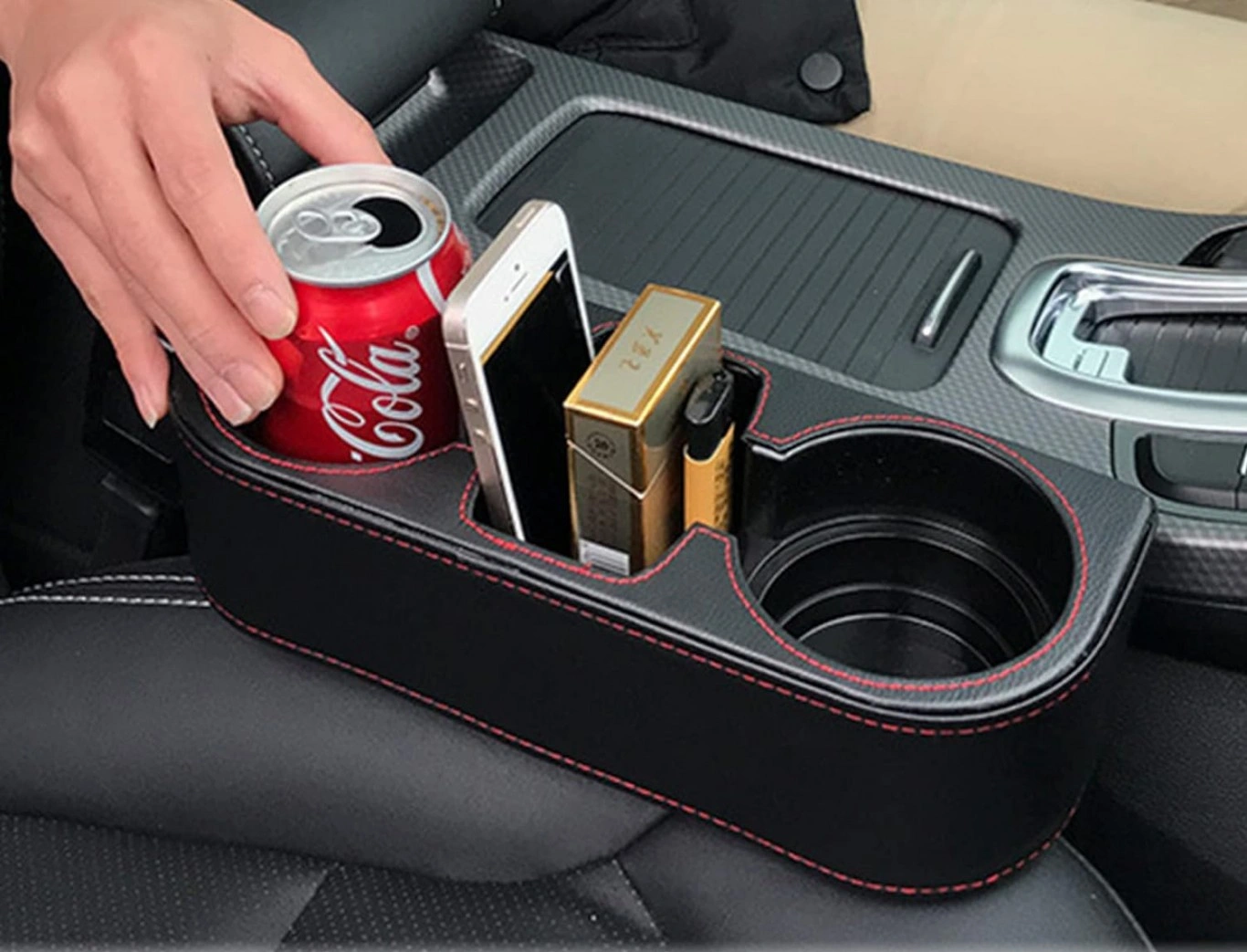 Τοποθετείται ανάμεσα στο κάθισμα και την κονσόλα και δημιουργεί επιπλέον 2 ποτηροθήκες αλλά και αποθηκευτικό χώρο για τα αντικείμενα σας όπως κινητά τηλέφωνα, κλειδιά, γυαλιά ηλίου, νομίσματα, στυλό.