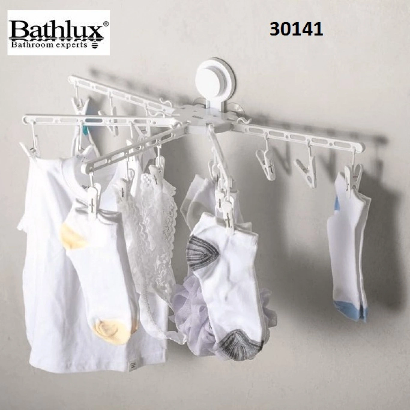 Πλαστική Ημικυκλική Απλώστρα Τοίχου με Μανταλάκια & Βεντούζα 30141 Bathlux 52.5×30.5×15.2εκ.