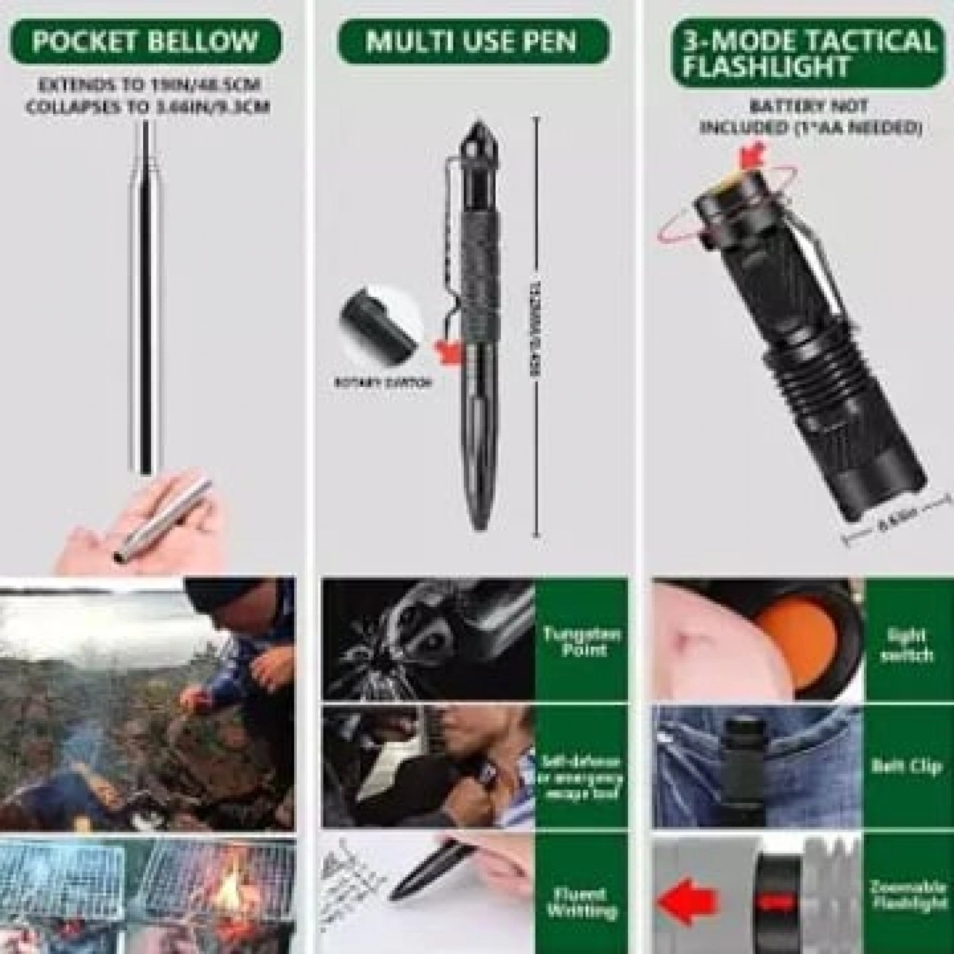 Ένα πλήρες κιτ επιβίωσης, ιδανικό για τη φροντίδα οποιασδήποτε έκτακτης ανάγκης ή ιατρικών αναγκών κατά τη διάρκεια camping και περιπετειών!