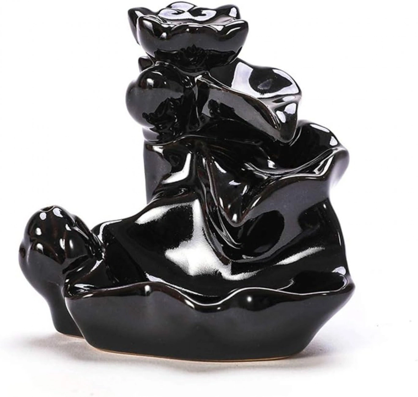 Πορσελάνινη Βάση Αντίστροφης Ροής για Αρωματικά Sticks– Backflow Incense Holder Μαύρο 8x8x8 cm