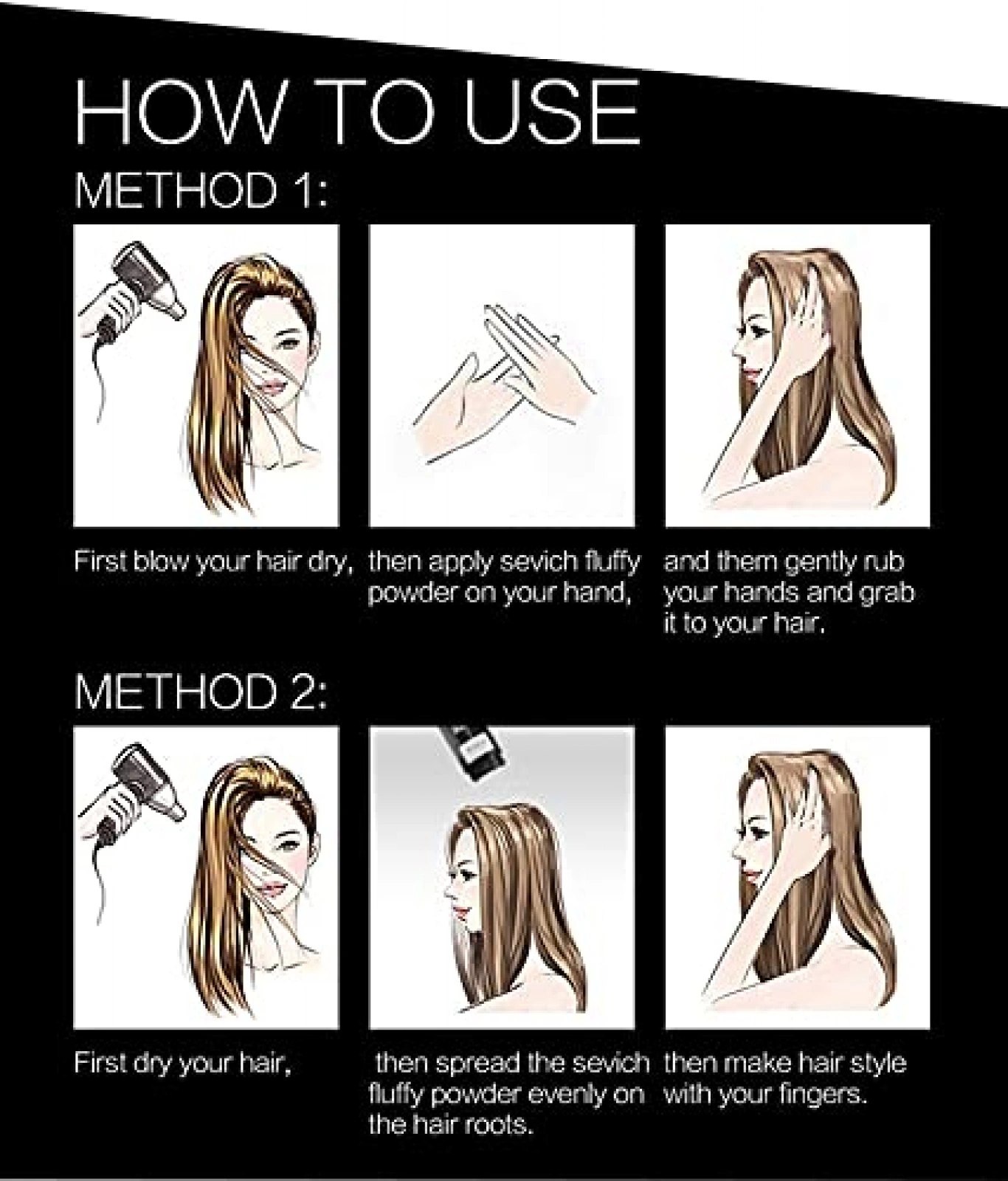 • Ξεκινήστε με καθαρά και στεγνά μαλλιά: Βεβαιωθείτε ότι τα μαλλιά σας είναι στεγνά ή ελαφρώς νωπά πριν την εφαρμογή της πούδρας.