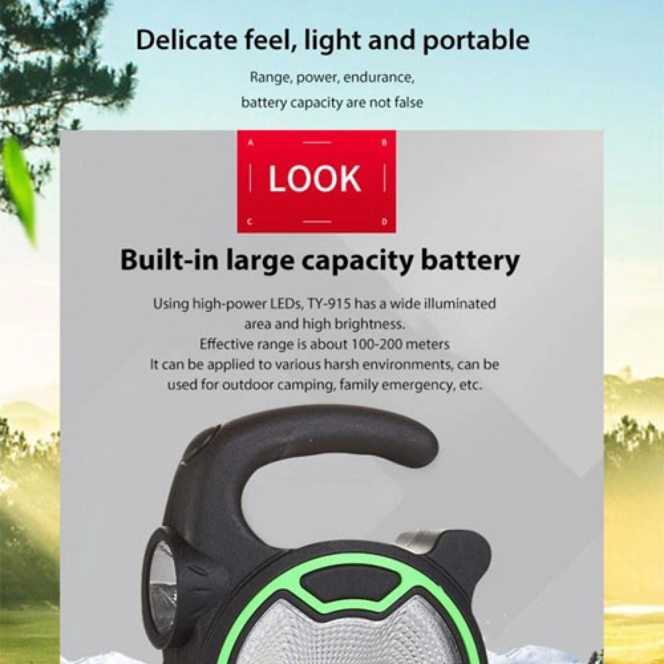 Χρησημοποιώντας LED υψηλής ισχύος, το TY-915 έχει υψηλή φωτεινότητα και αποτελεσματική εμβέλια περίπου 100 έως 200 μέτρα. Μπορεί να χρησημοποιηθεί σε διάφορα σκληρά περιβάλλοντα καθώς και για υπαίθρια κάμπινκγ, έκτακτη ανάγκη κ.λπ. Διαθέτει πλαινά φώτα. Χρησιμοποιώντας τεχνολογια COB , η οπτική ινα ακτινοβολείτε απαλά με μεγάλο εύρος και μεγάλη διάρκεια ζωής. Πατήστε ελαφρά τον διακόπτη για να ενεργοποιήσετε το πλευρικό φώς ή τον κεντρικό διακόπτη.