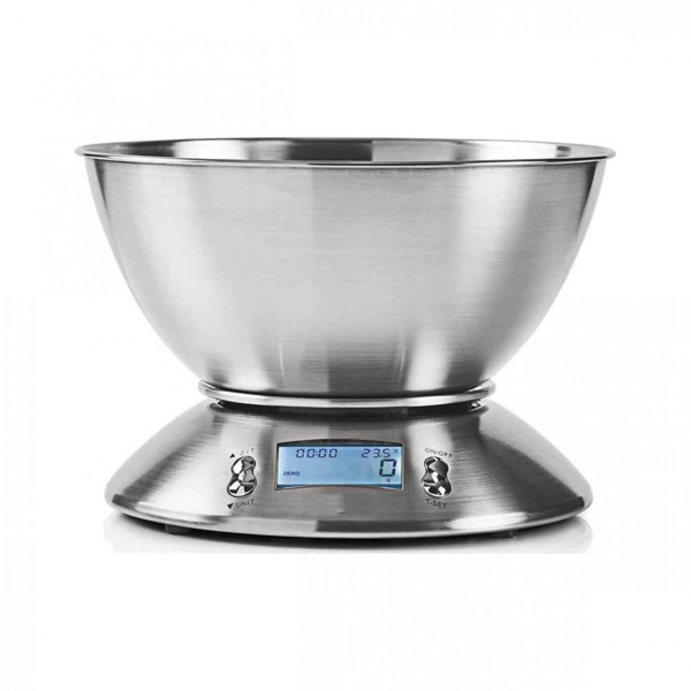 Ψηφιακή ζυγαριά κουζίνας με μέγιστο βάρος μέτρησης 5kg. Διαθέτει ανοξείδωτο μπολ για εύκολο πλύσιμο καθώς και χρονόμετρο.✔️Ανθεκτική κατασκευή από ανοξείδωτο ατσάλι.✔️Διαθέτει αποσπώμενο μπολ για εύκολο καθαρισμό.✔️Ευανάγνωστη οθόνη LCD, φωτιζόμενη μπλε.✔️Δυνατότητα επιλογής μονάδων μέτρησης kg, gr, lb, oz.✔️Εμφάνιση θερμοκρασίας ειδών σε °C / °F.✔️Λειτουργία απόβαρου.✔️Βάση με υψηλή σταθερότητα.✔️Πλήκτρο λειτουργίας on/off.✔️Λειτουργία χρονόμετρου κουζίνας με ηχητική ειδοποίηση.✔️Προβολή θερμοκρασίας χώρου.