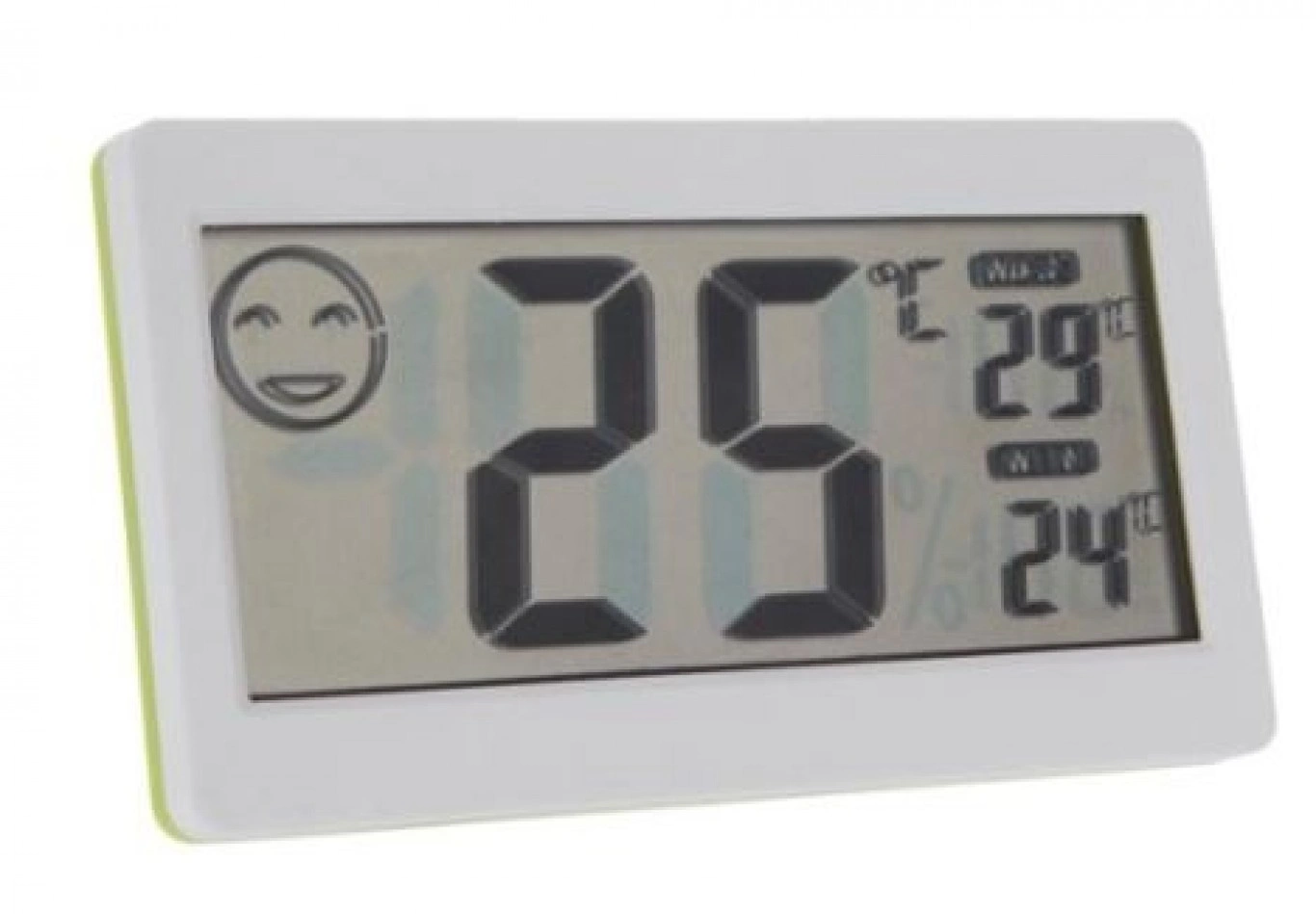 Ένα χρήσιμο όργανο με ενδείξεις θερμοκρασίας και υγρασίας εσωτερικού και εξωτερικού χώρου, με μεγάλη ψηφιακή οθόνη και μεγάλους ευδιάκριτους αριθμούς.