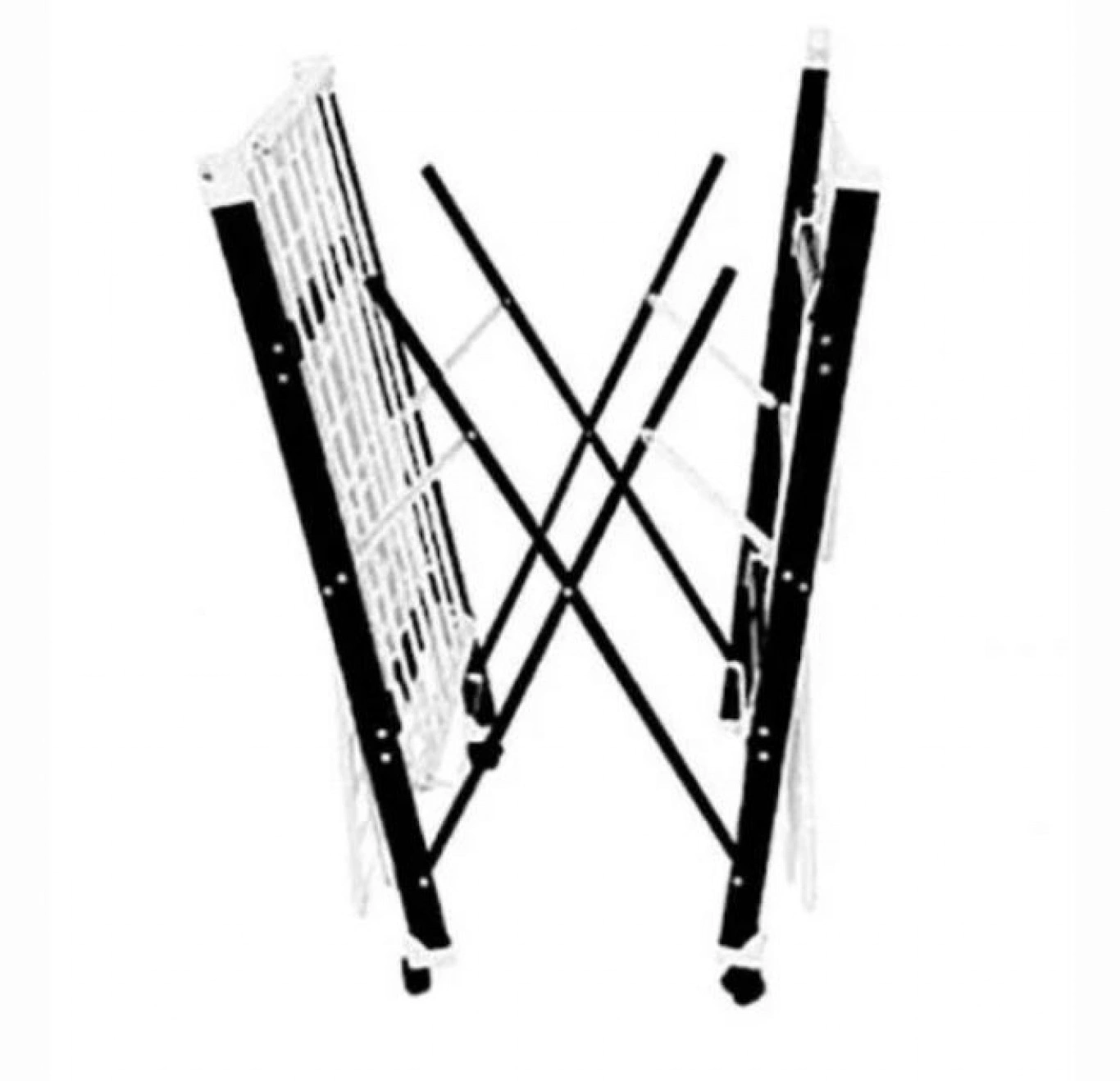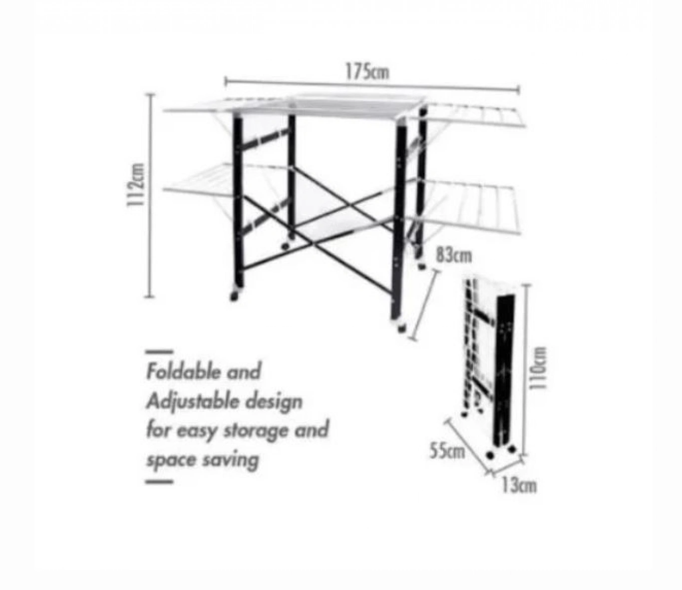 Πτυσσόμενη Σταθερή Απλώστρα Δαπέδου διαστάσεων 175x83x112, δύο επιπέδων με ροδάκια μεταφοράς. Χάρη σε αυτή θα μπορείτε να κρεμάτε όλα τα ρούχα σας ταυτόχρονα. Όταν κλείσετε την απλώστρα εξοικονομείτε χώρο, καθώς μπορείτε να την κρατήσετε πίσω από την ντουλάπα σας, μέσα στην ντουλάπα ή στο διάδρομο.