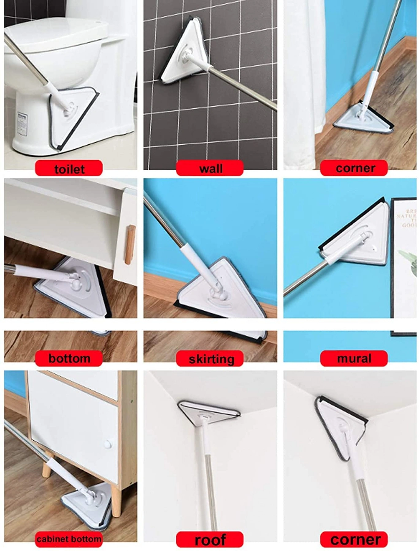 ✔️Ο τριγωνικός σχεδιασμός βοηθάει να μην αφήνετε σκόνη στις νεκρές γωνίες και καθαρίζει εύκολα την επίμονη σκόνη στη γωνία των τοίχων, της οροφής και των παραθύρων.
