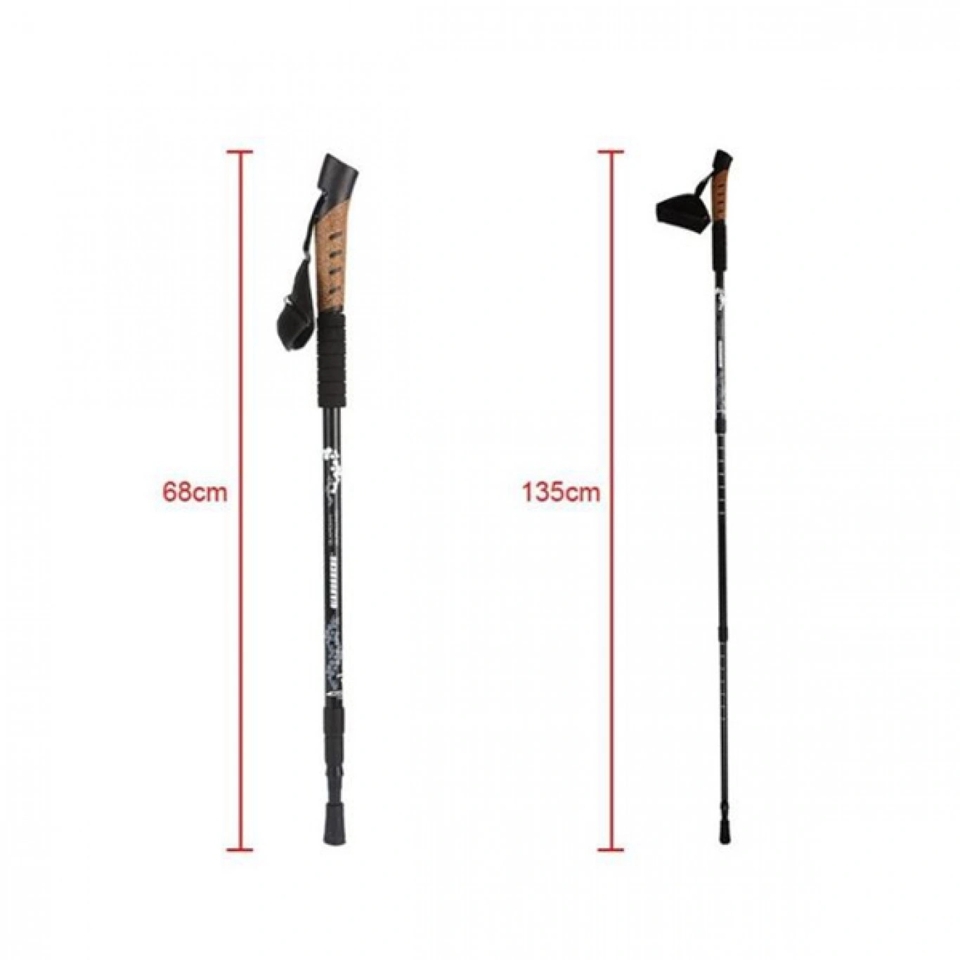 Κατασκευασμένο από κράμα αλουμινίου, εφοδιασμένο με μηχανισμό ελατηρίου που μειώνει τις καταπονήσεις στα χέρια και στον καρπό, με ανθεκτικούς και ρυθμιζόμενους ιμάντες καρπού που προσφέρουν ασφαλέστερη λαβή. Πτυσσόμενο με διαστάσεις από 68 cm εώς 135 cm. Επιπροσθέτως το μπαστούνι συνοδεύει μία αφαιρούμενη τάπα πεζοπορίας (λάσπης / χιονιού) για να αποφευχθεί η βύθιση σε μαλακό χώμα ή άμμο. Κατασκευασμένο από ελαφρύ αλουμίνιο 6051, ισχυρό και ελαφρύ. Αμορτισέρ ελατηρίου, τριπλό σπειροειδές. Ελαφρύ και εύκολο στη μεταφορά. Διαθέτει ρυθμιζόμενο λουρί καρπού.