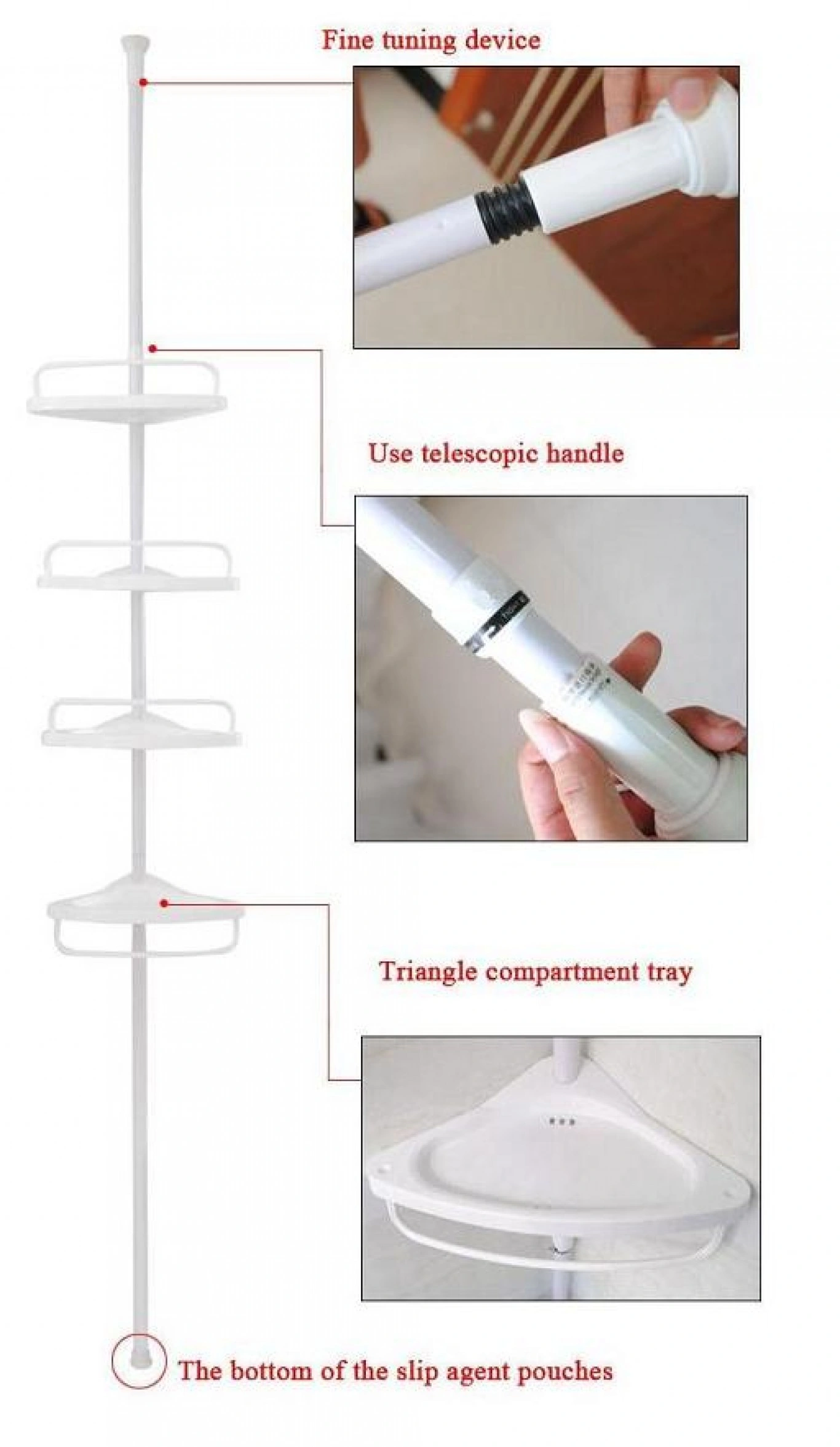 ✔️Δεν χρειάζεται να ανοίξουμε τρύπες Είναι τηλεσκοπικό με βεντούζα. Με 4 ξεχωριστά ραφάκια.
