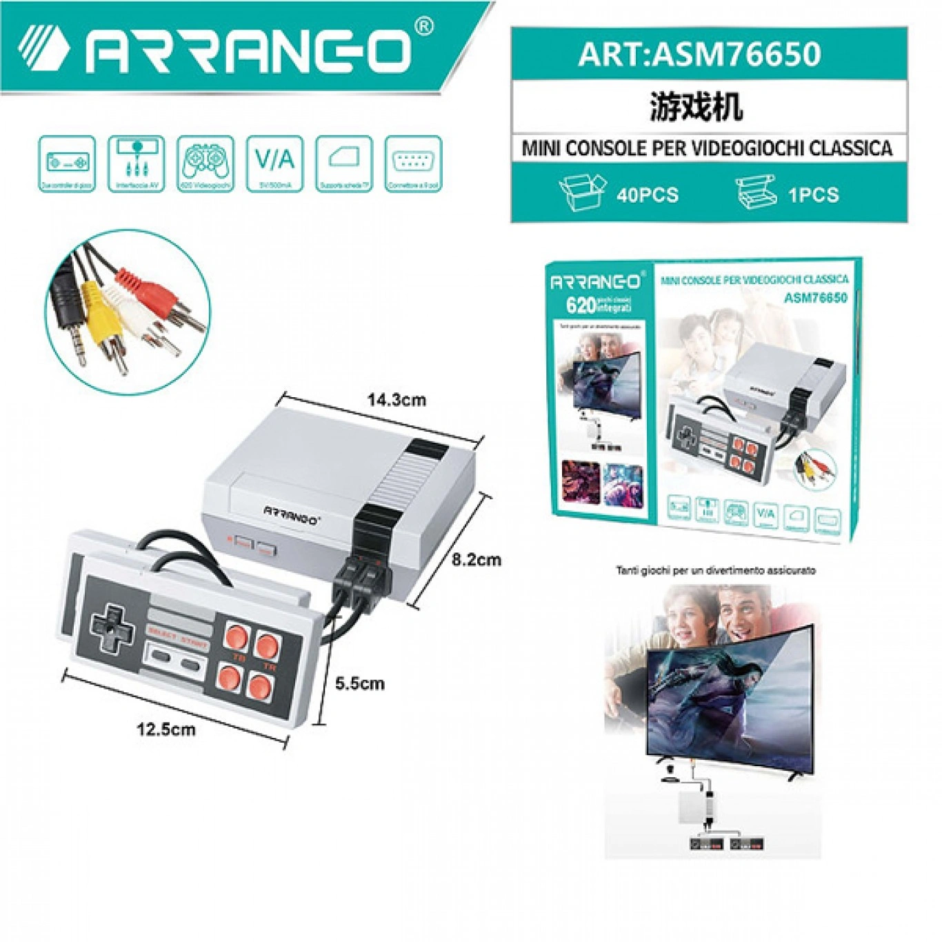 Ρετρό Παιχνιδομηχανή με 620 Παιχνίδια – 2 Χειριστήρια , RCA – Retro Arcade Game Console ASM76650