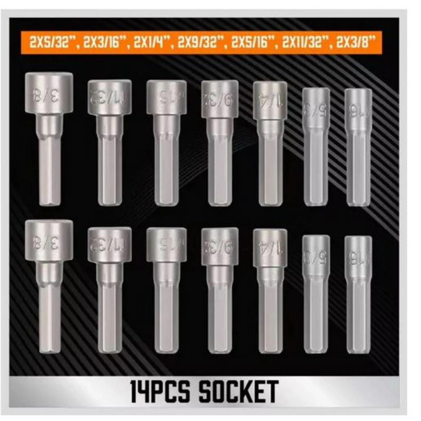 • 2 X 5/32”, 2 X 3/16”, 2 X 1/4”, 2 X 9/32”, 2 X 5/16”, 2 X 11/32”, 2 X 3/8”