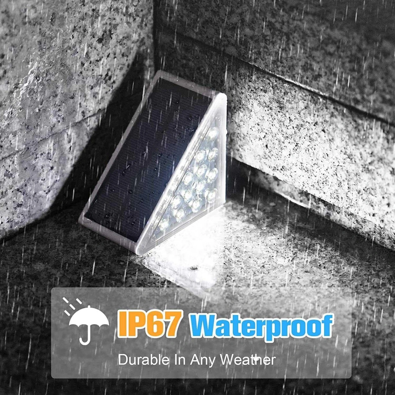 Σετ με 2τμχ αδιάβροχα επιτοίχια ή επιδαπέδια ηλιακά φωτιστικά ιδανικά για τοποθέτηση σε γωνίες τοίχων ή σκάλες. Λειτουργούν και φωτίζουν αυτόνομα καθώς φορτίζουν κατά την διάρκεια της ημέρας με τον ήλιο ενώ ανάβουν αυτόματα όταν σκοτεινιάσει